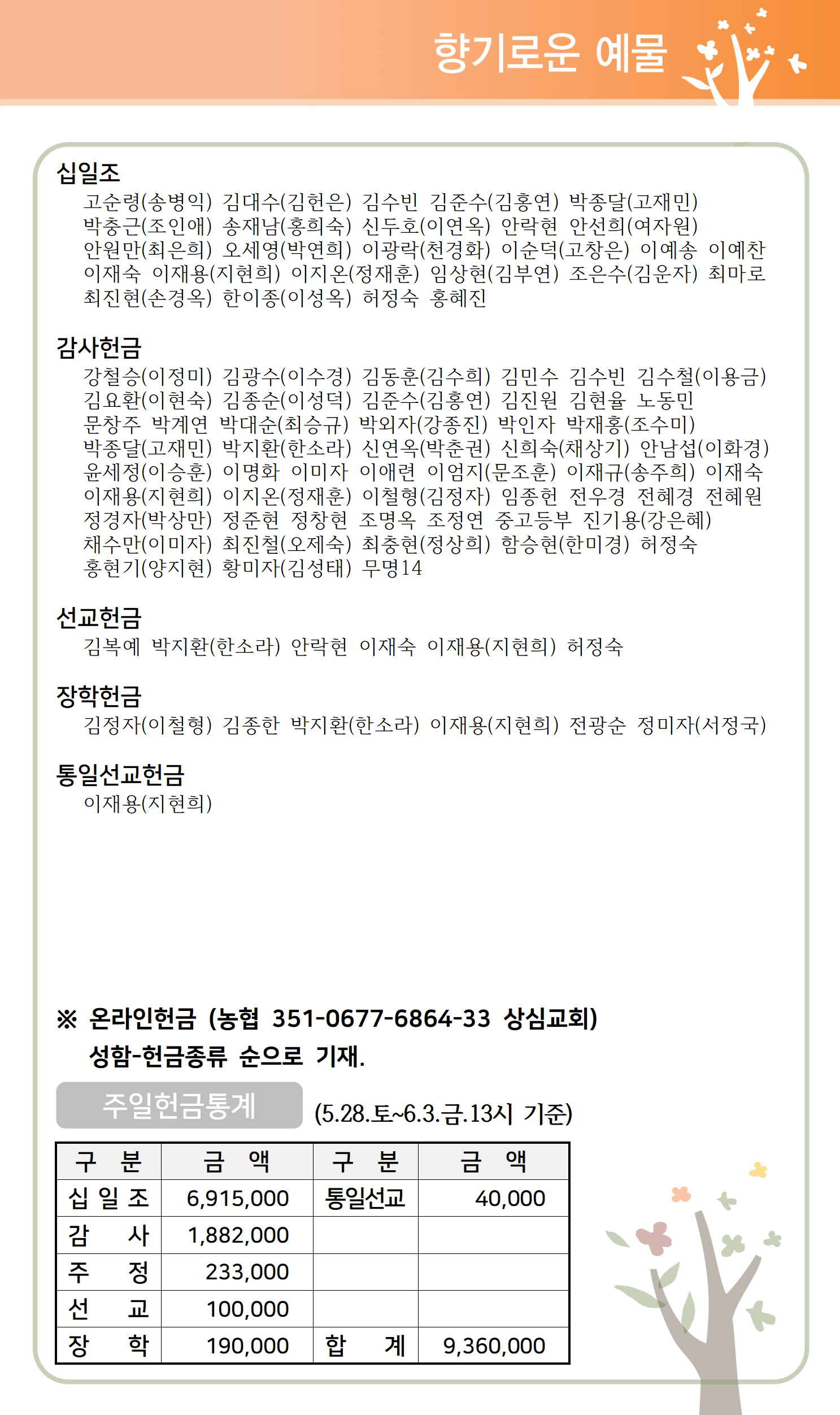 | 상심리교회 2022년 5월 15일 주보 (0) | 2022.05.14 |
