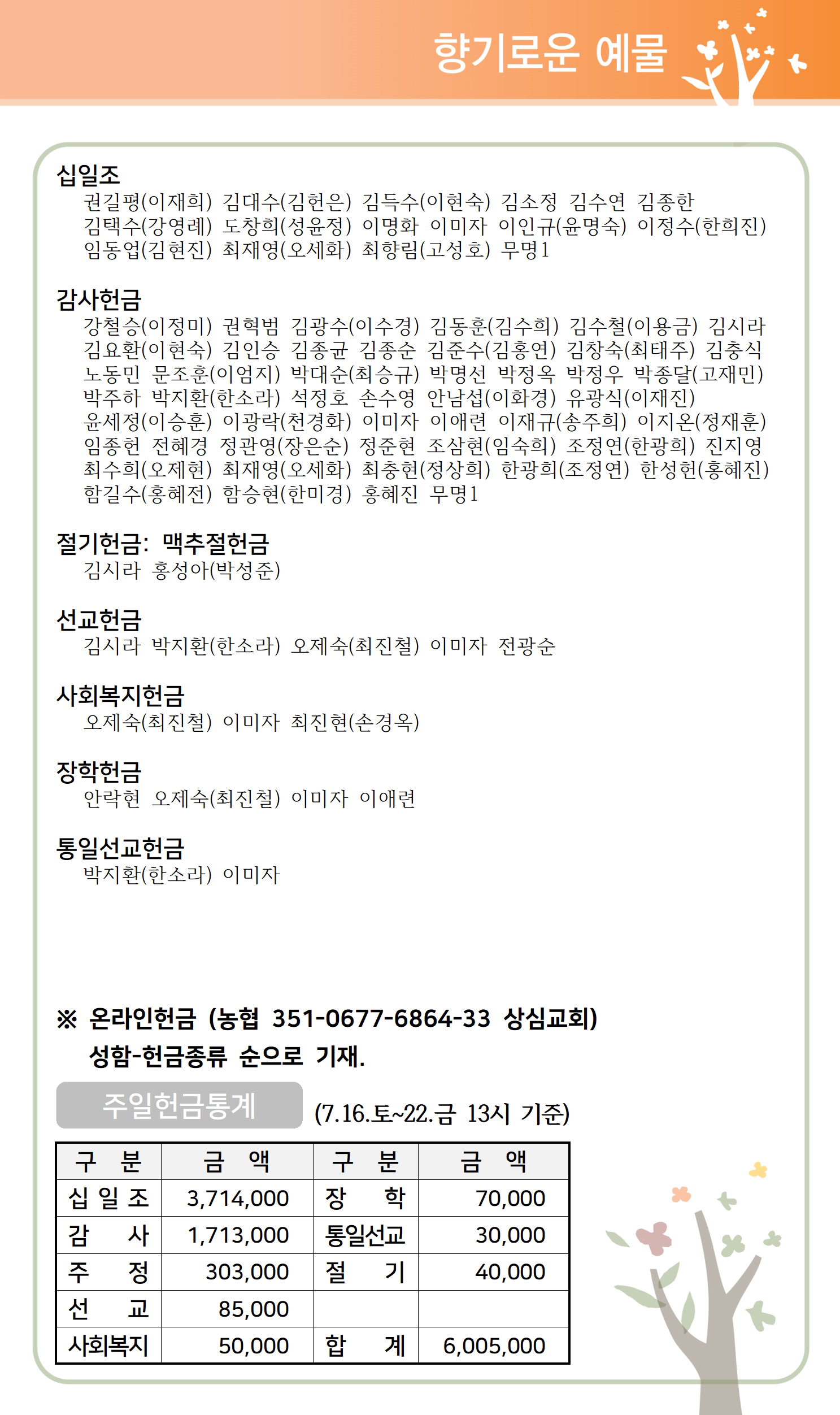 | 상심리교회 2022년 7월 17일 주보 (0) | 2022.07.16 |