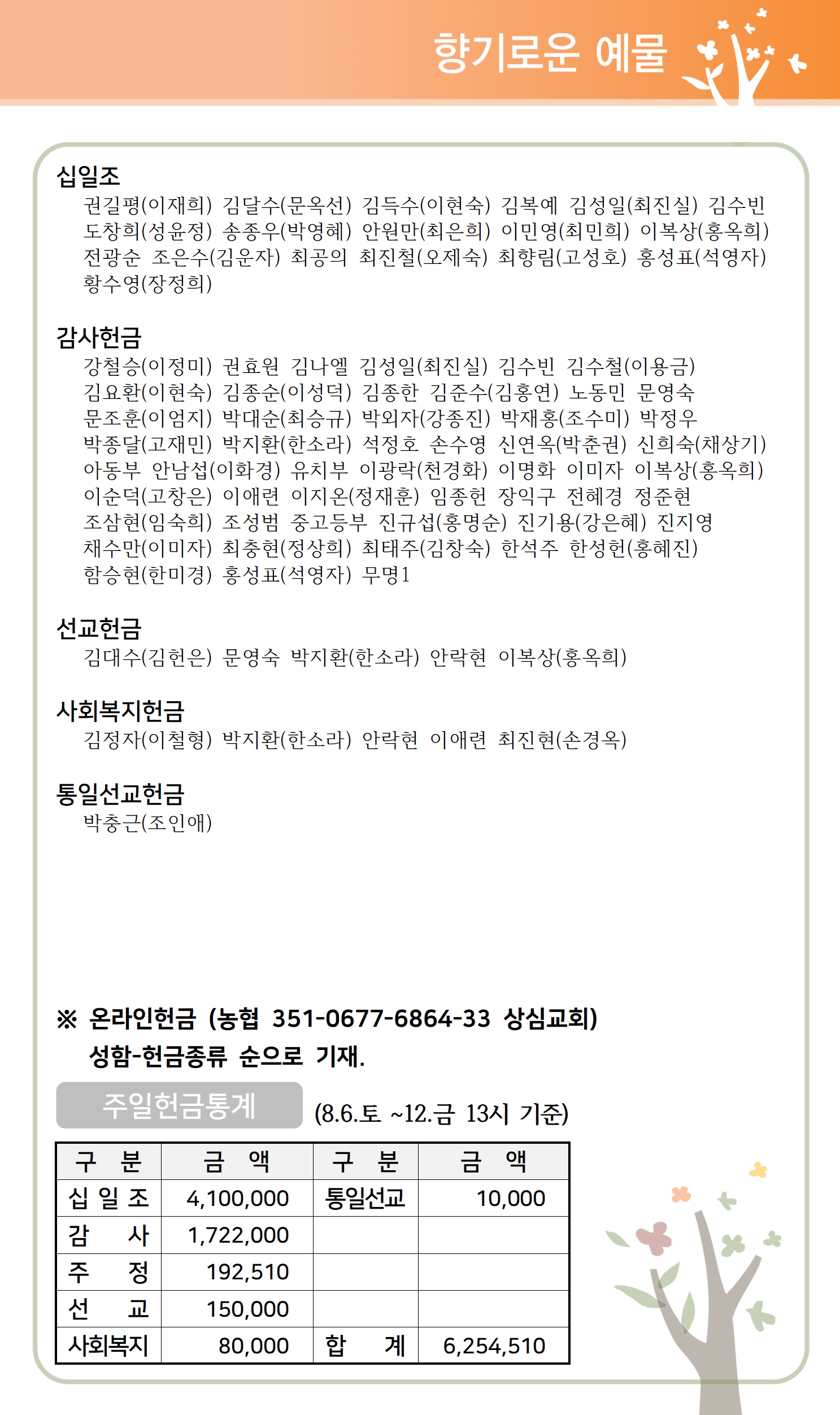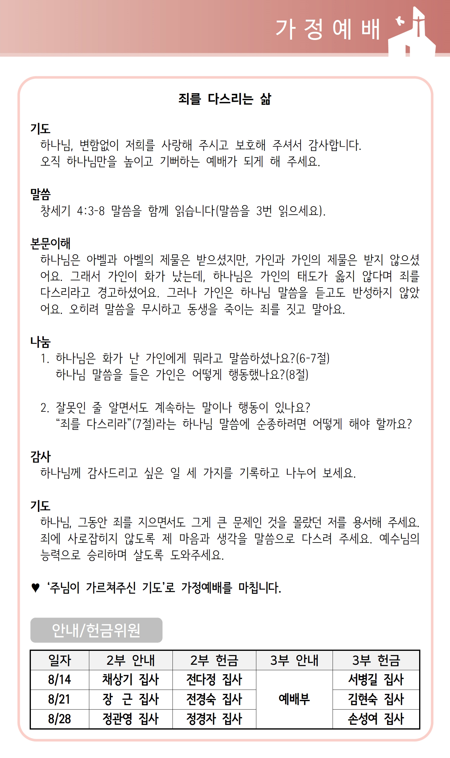 상심리교회 2022년 8월 14일 주보