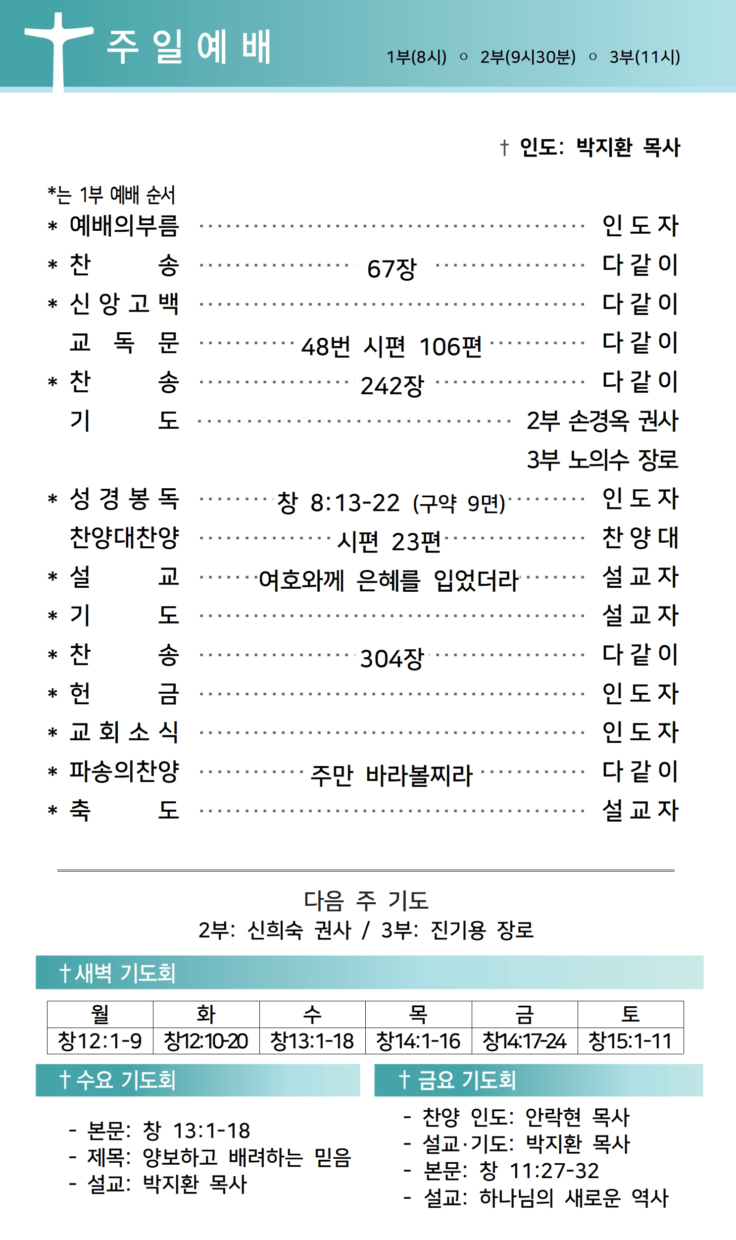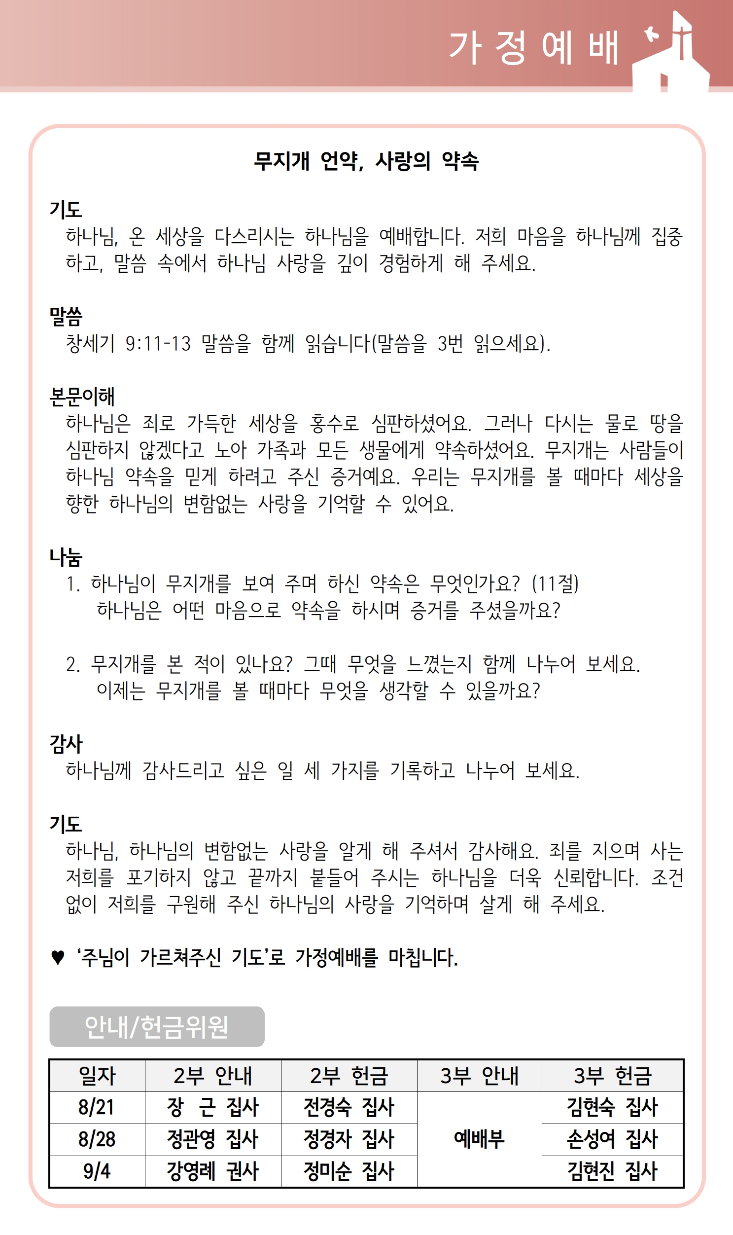 상심리교회 2022년 8월 21일 주보