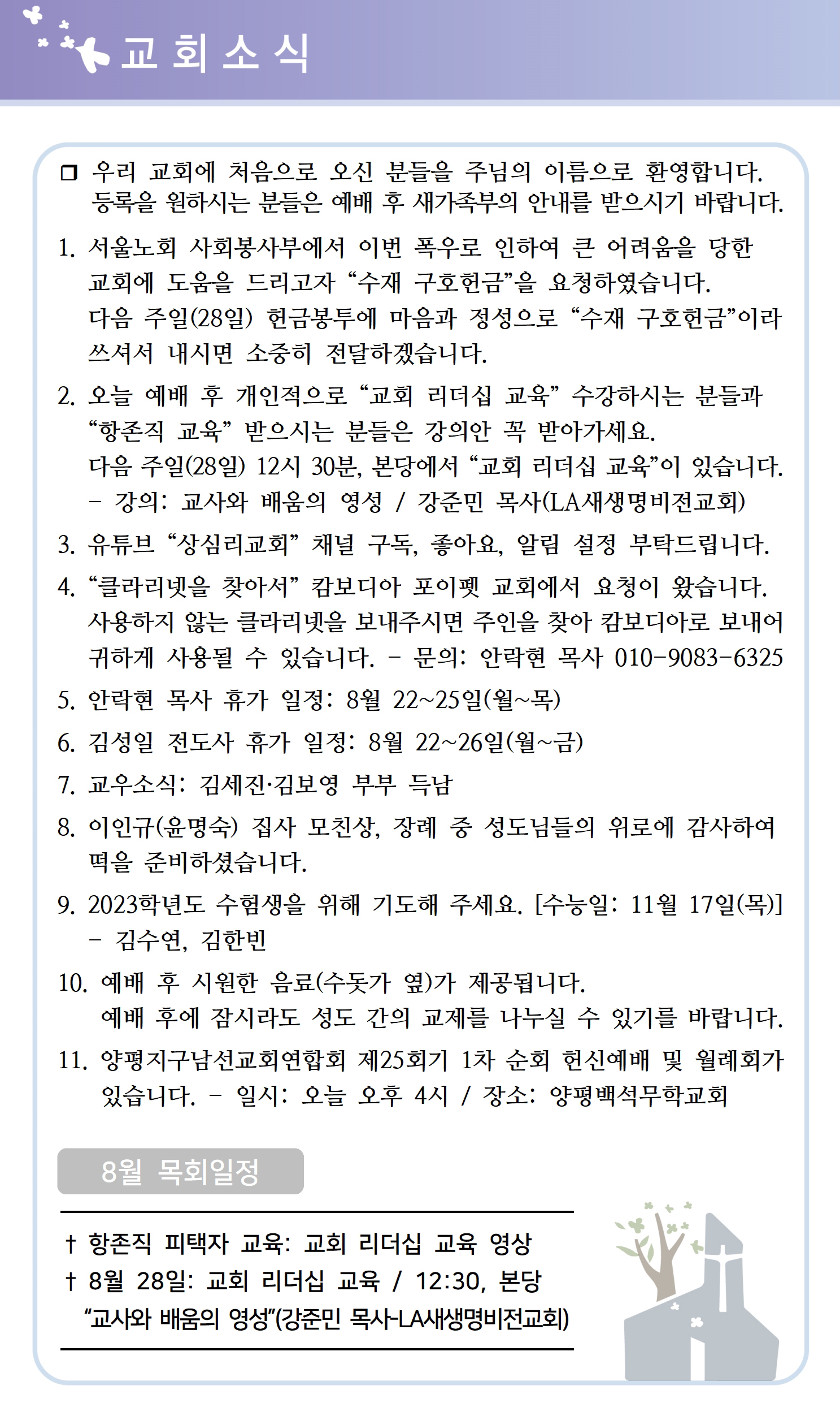 상심리교회 2022년 8월 21일 주보