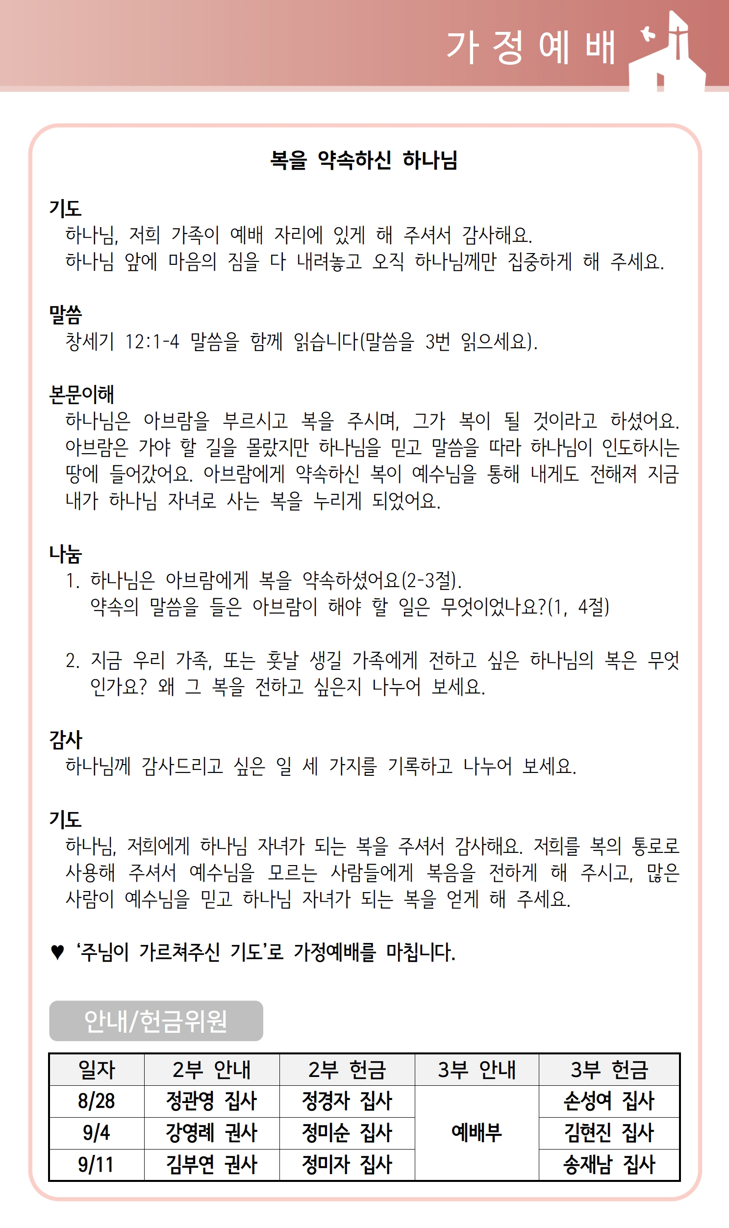 | 상심리교회 2022년 추석 명절 가정예배 순서지 (0) | 2022.08.27 |