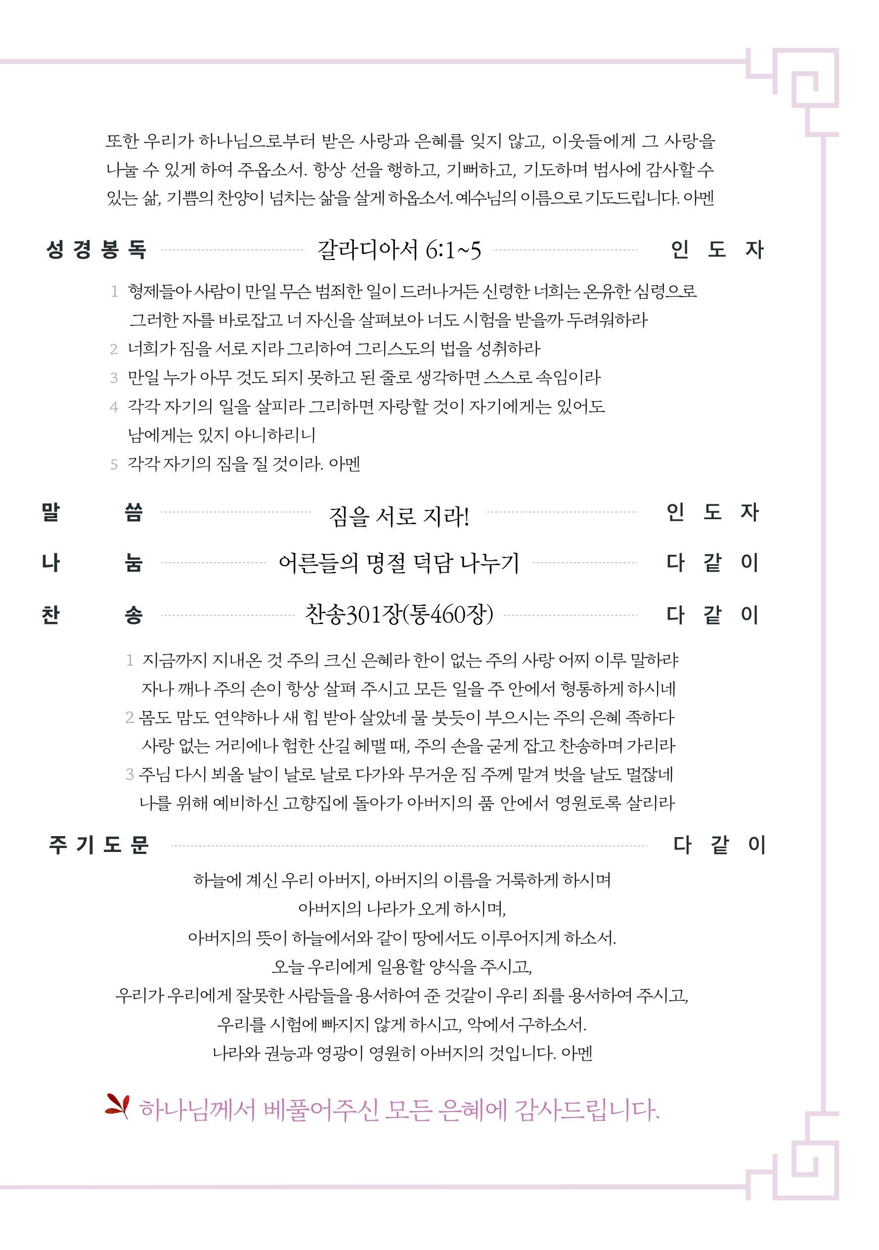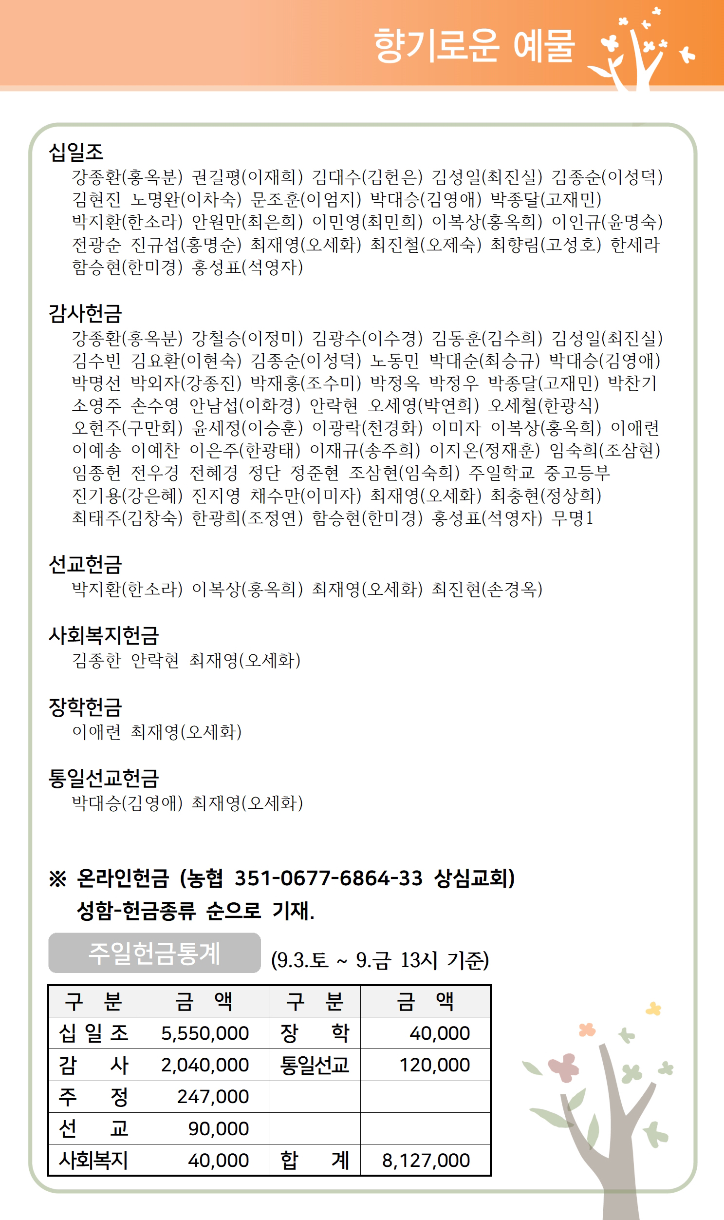 상심리교회 2022년 9월 11일 주보