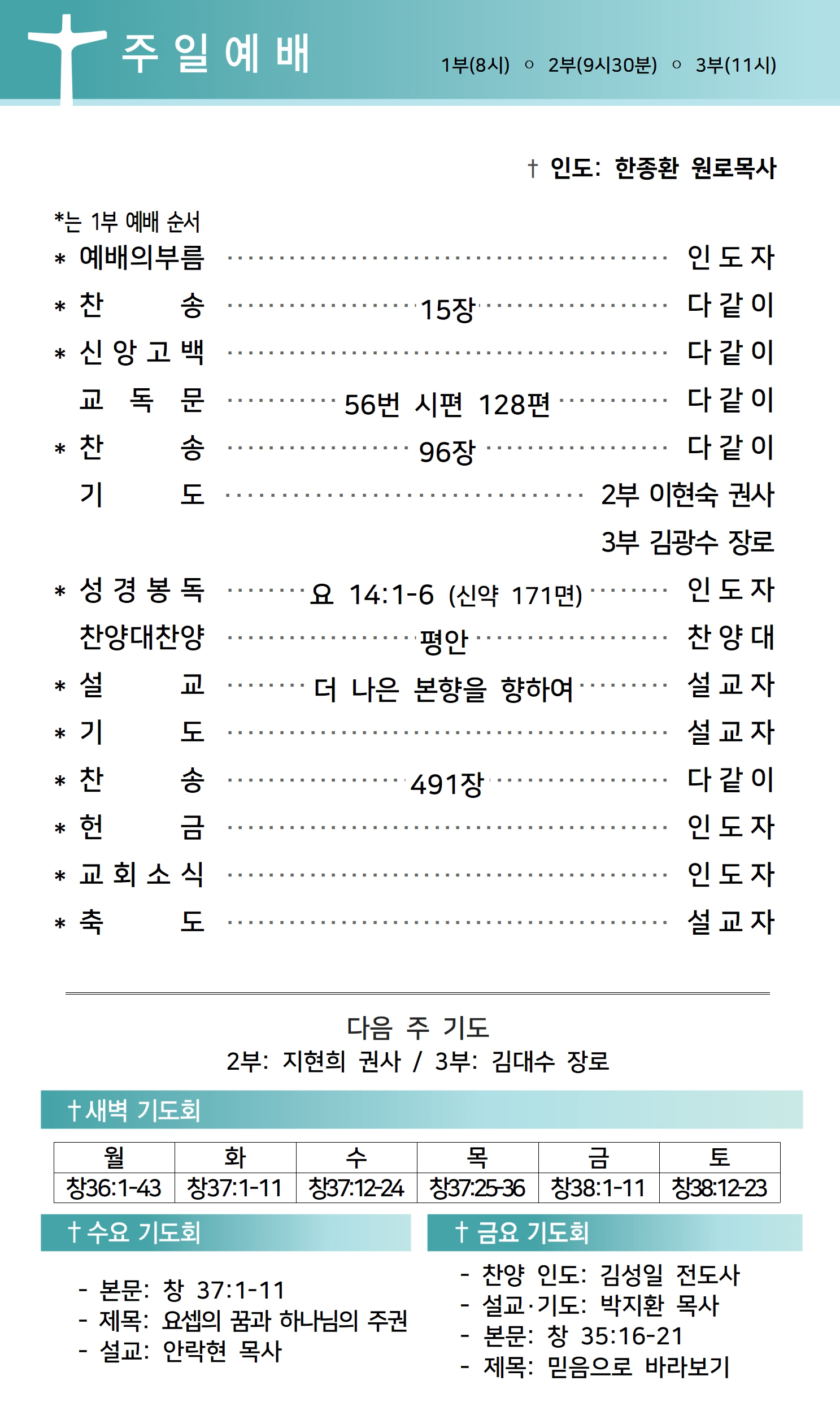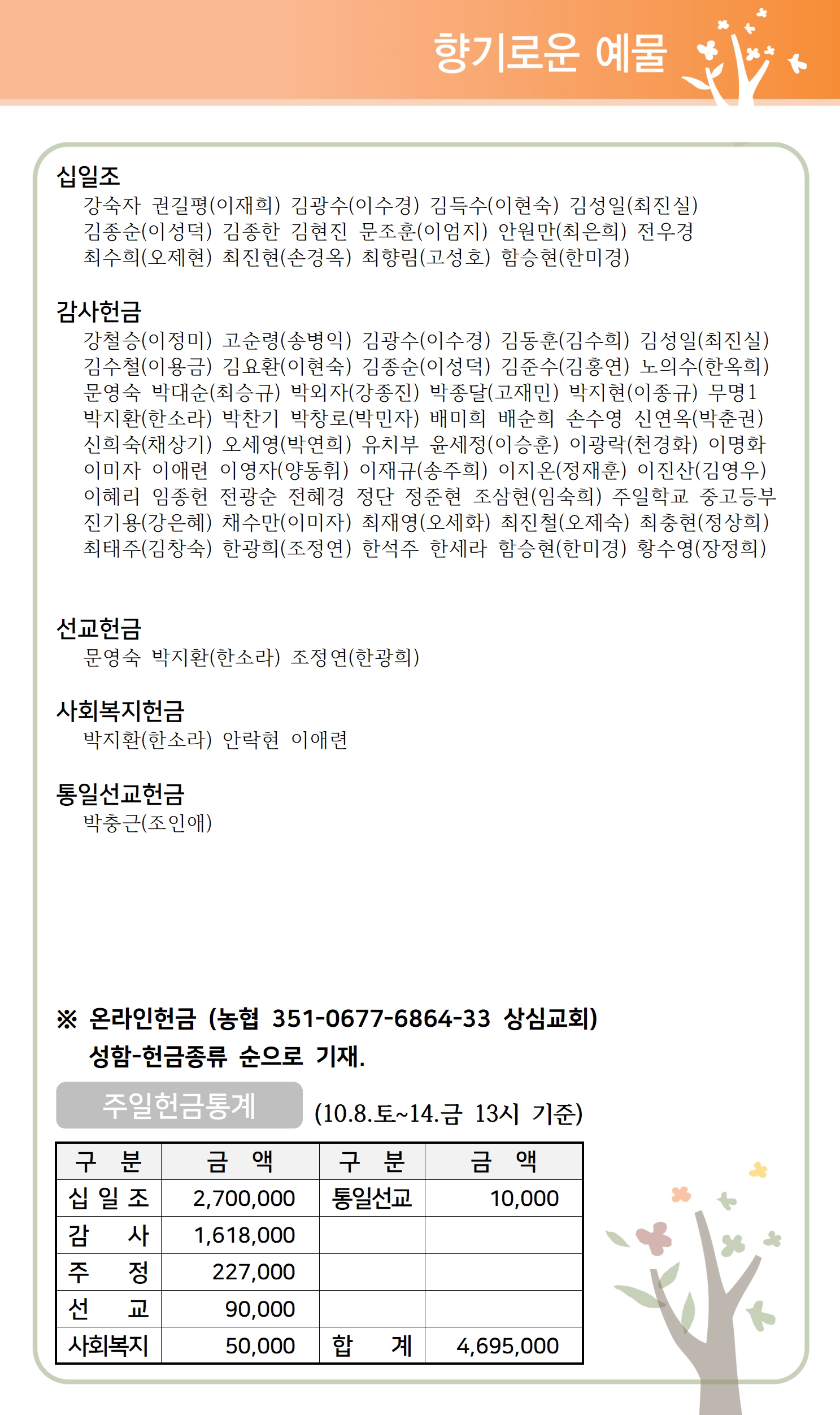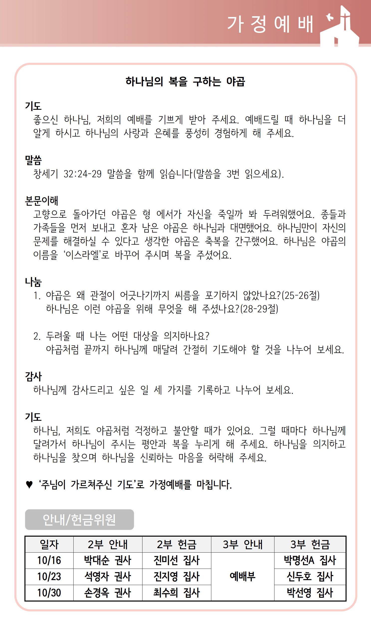상심리교회 2022년 10월 16일 주보