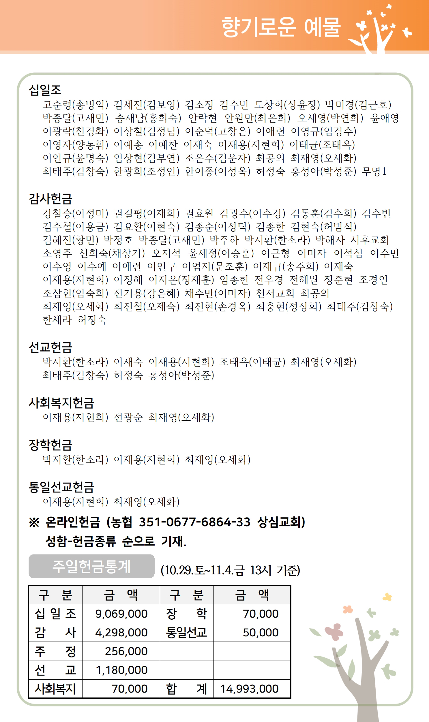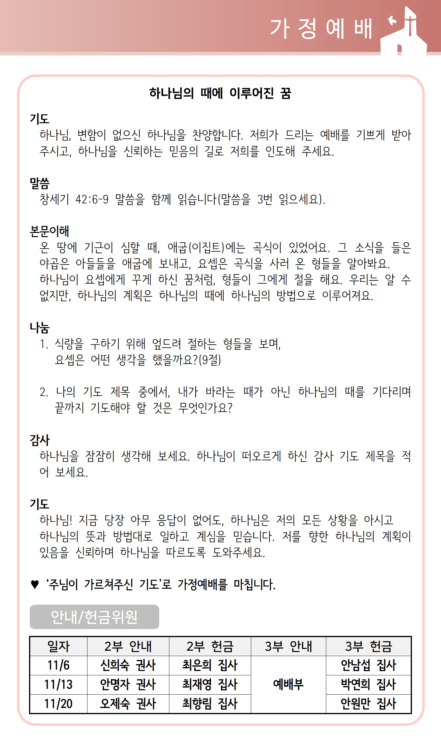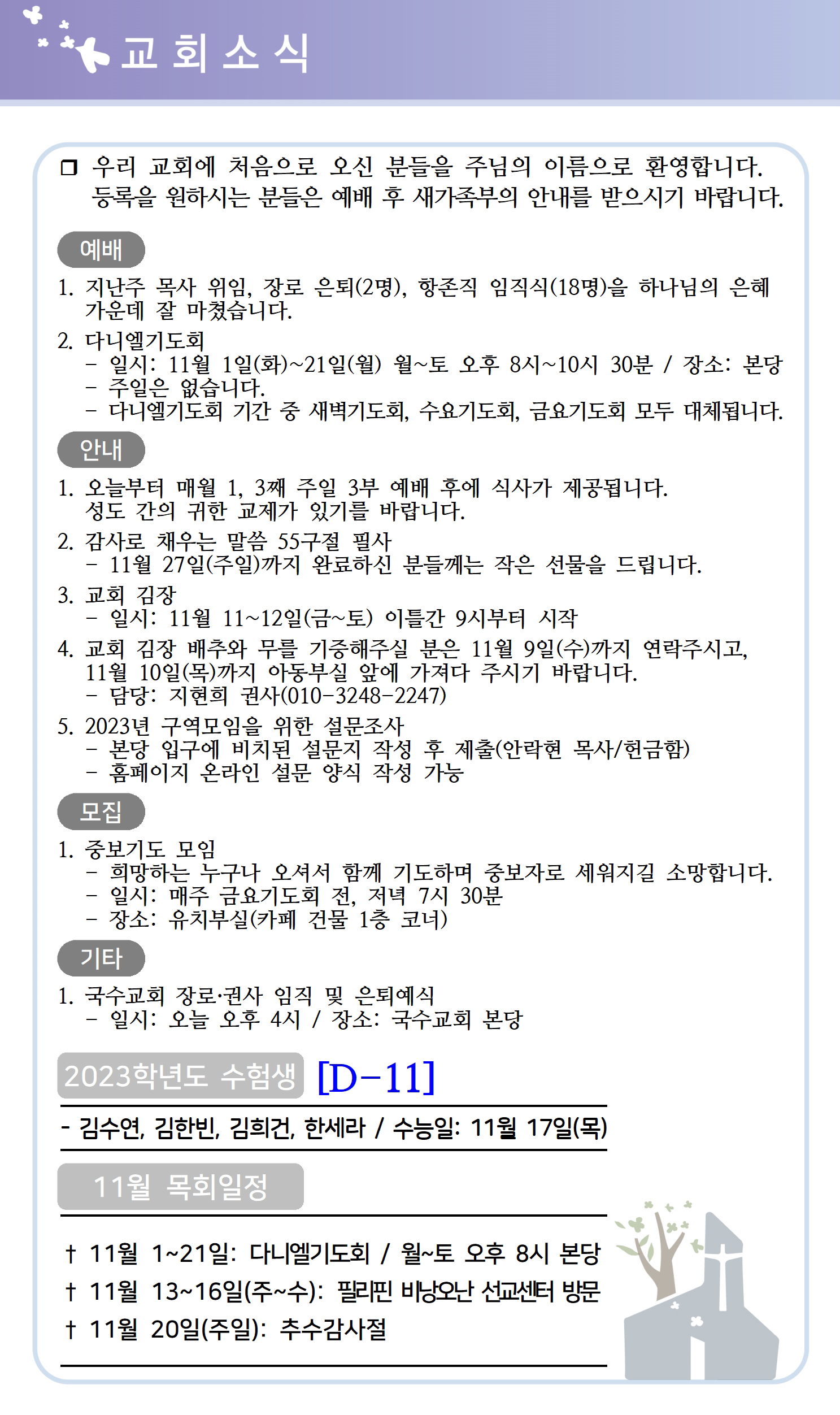 상심리교회 2022년 11월 6일 주보