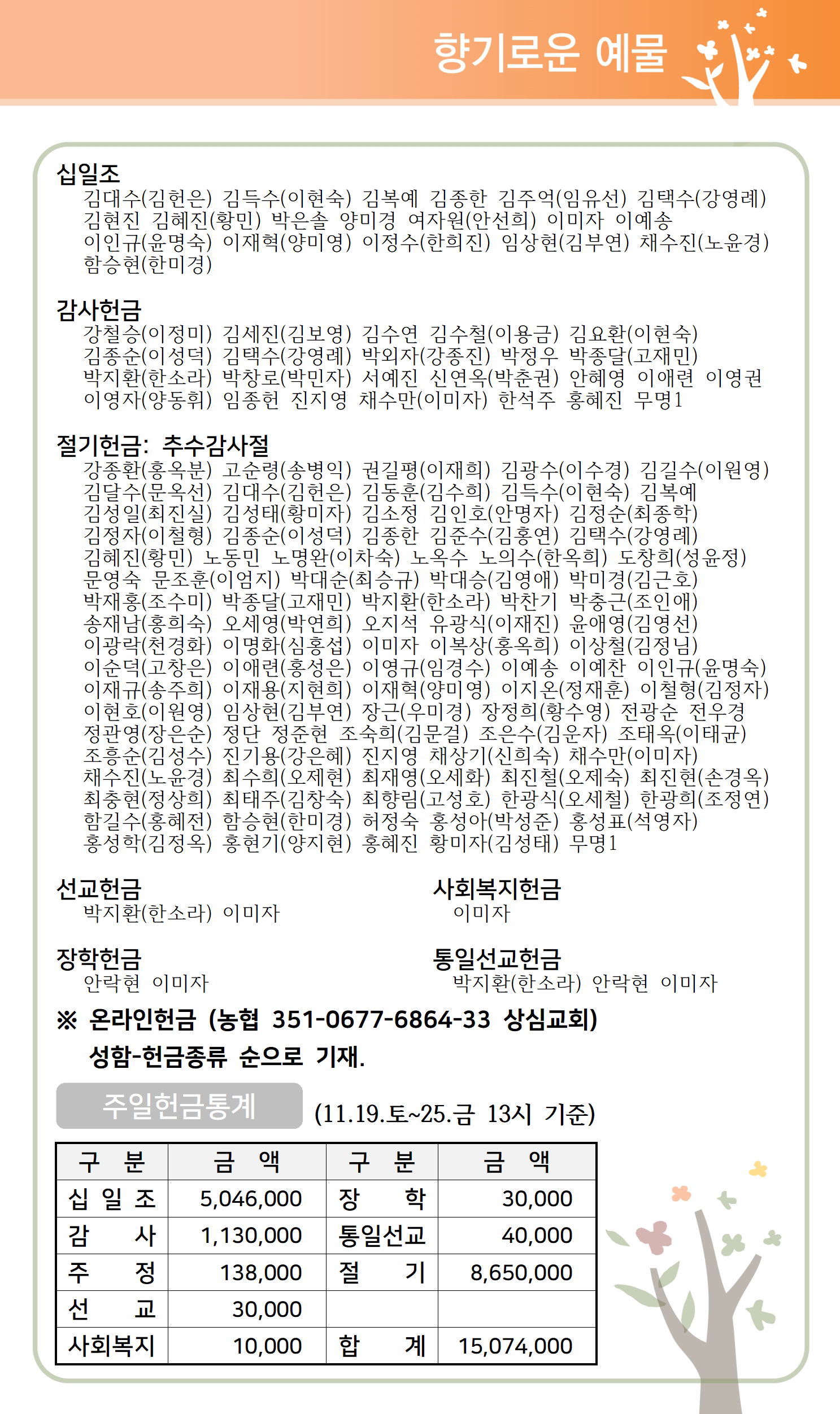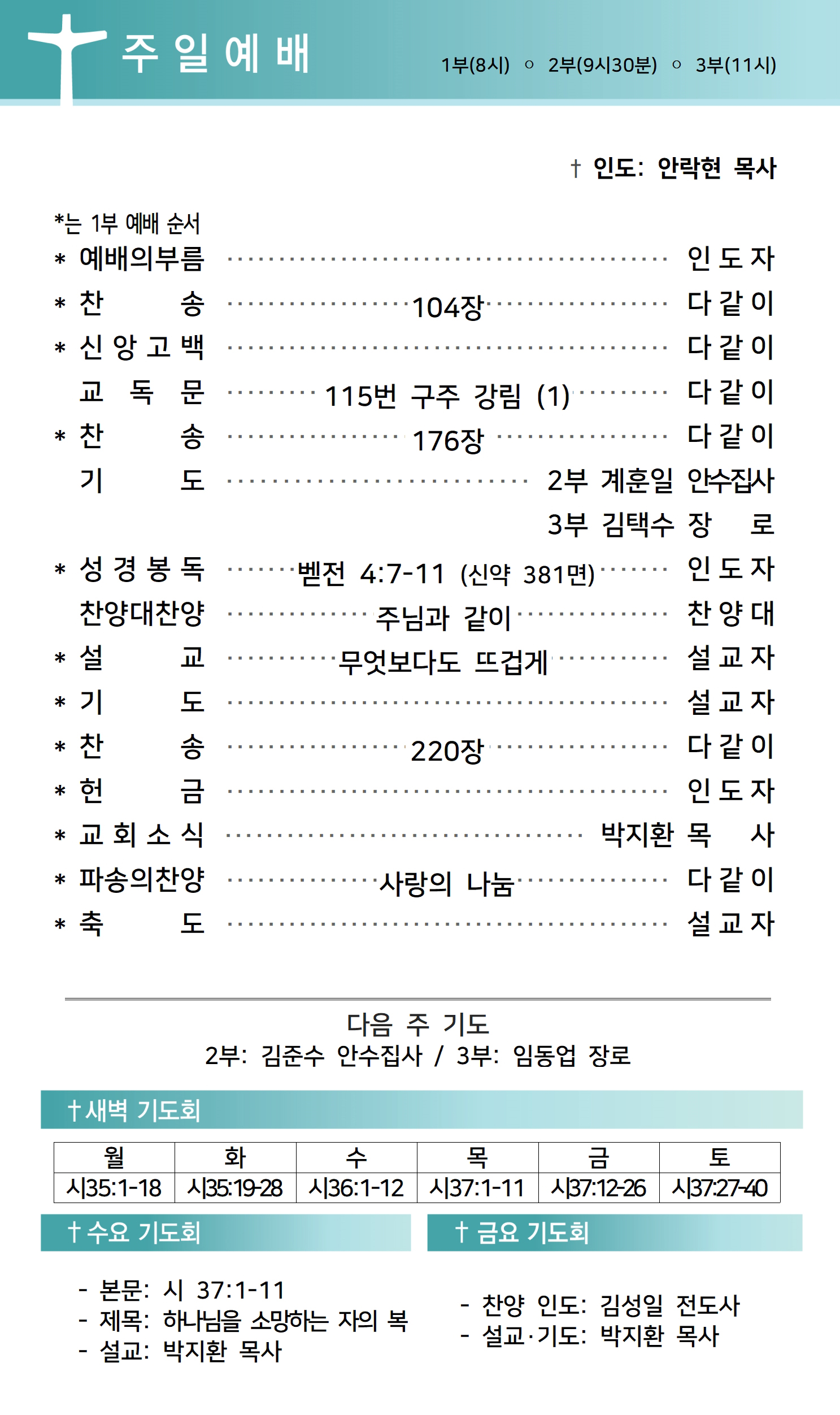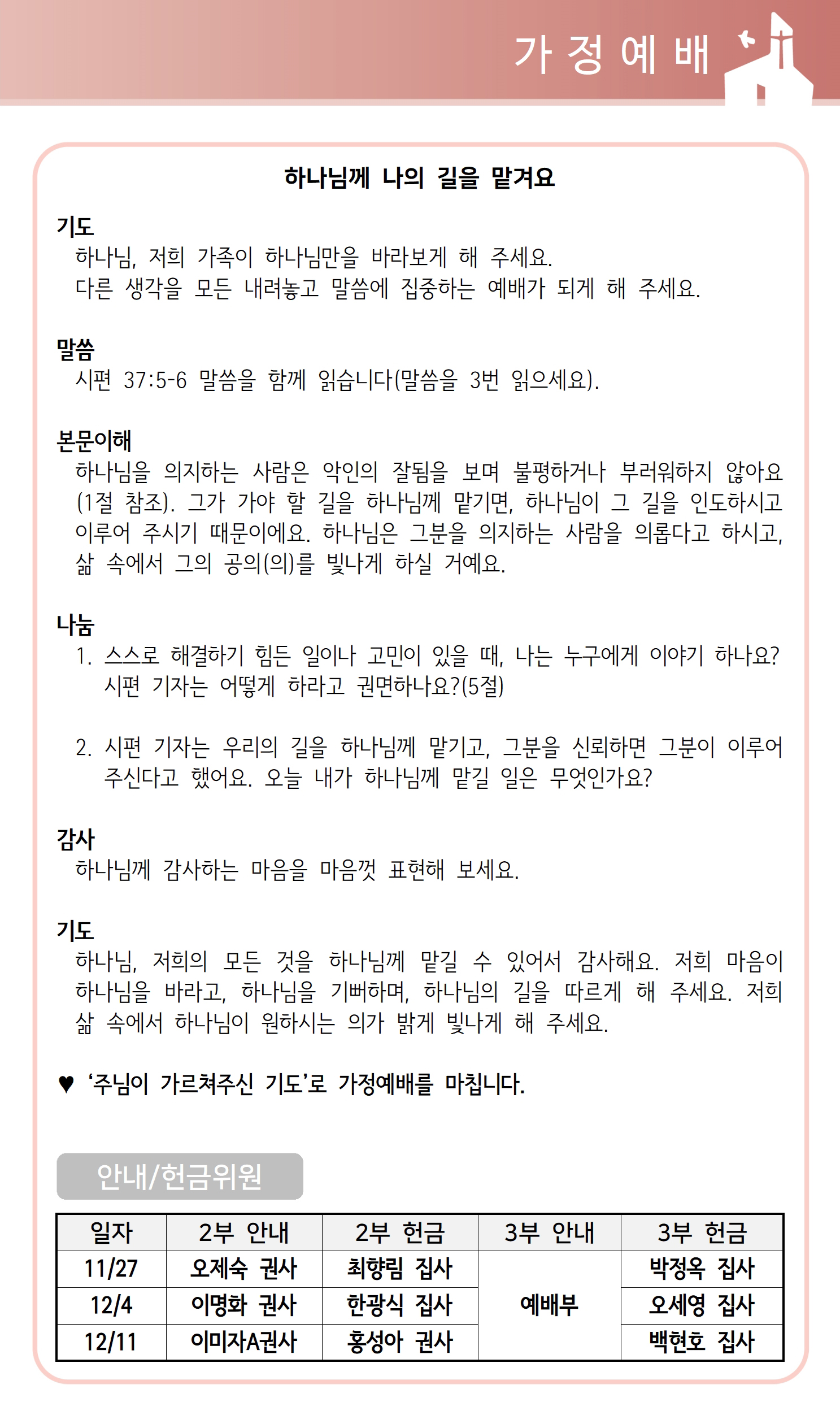 상심리교회 2022년 11월 27일 주보