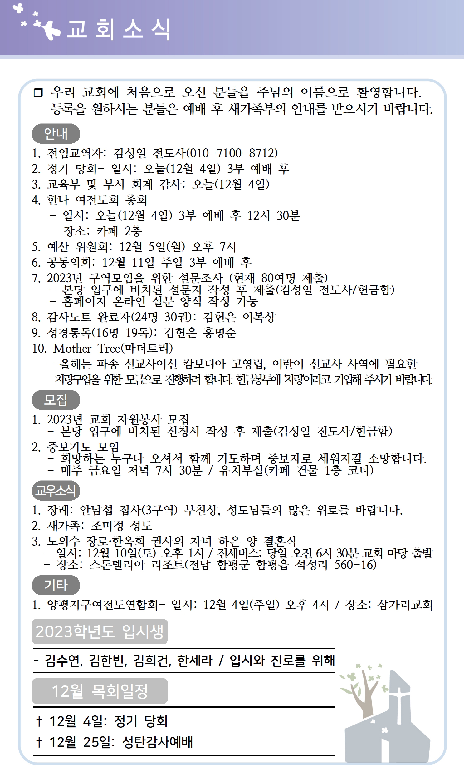 | 상심리교회 2022년 12월 11일 주보 (0) | 2022.12.10 |