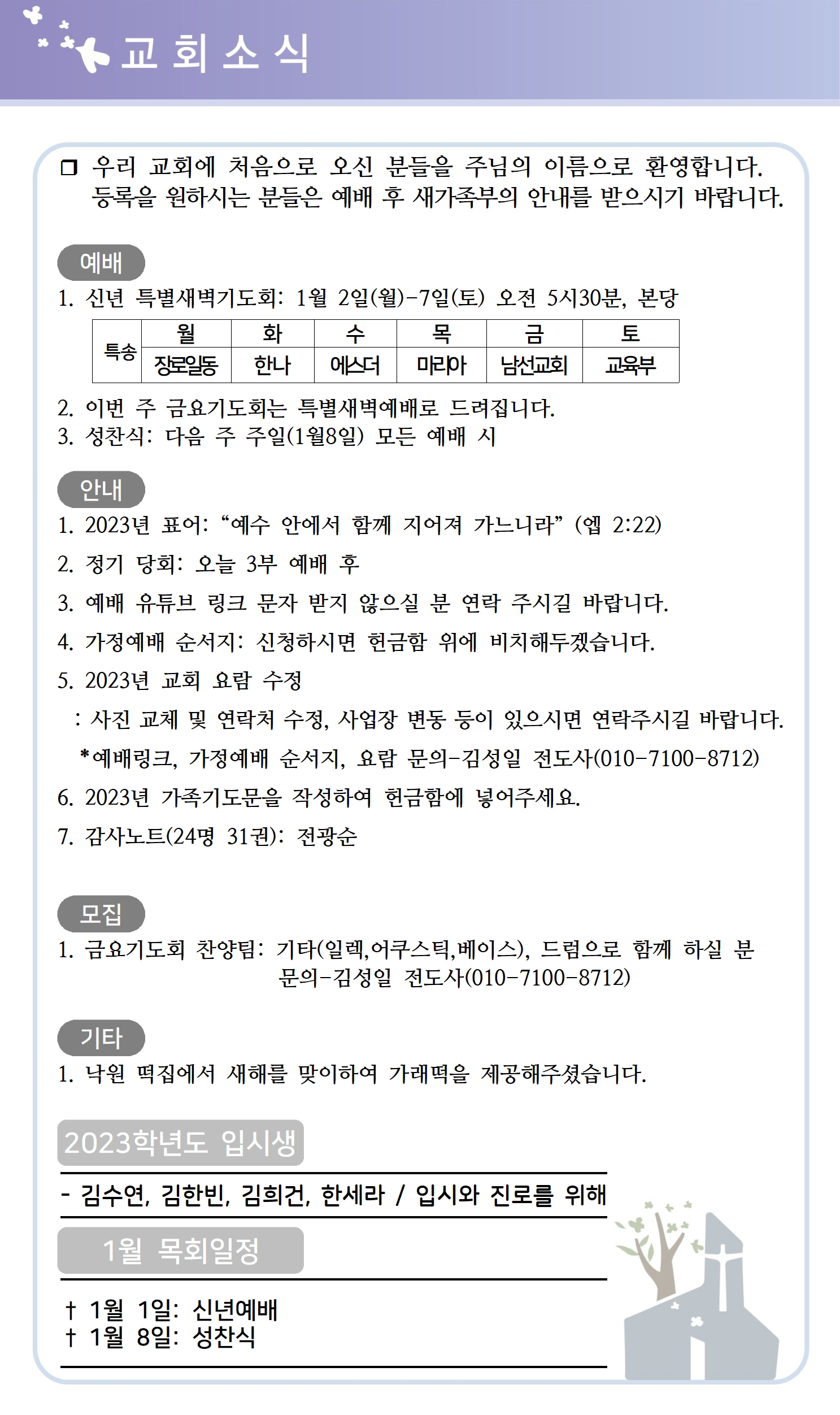 | 상심리교회 2023년 1월 8일 주보 (0) | 2023.01.07 |
