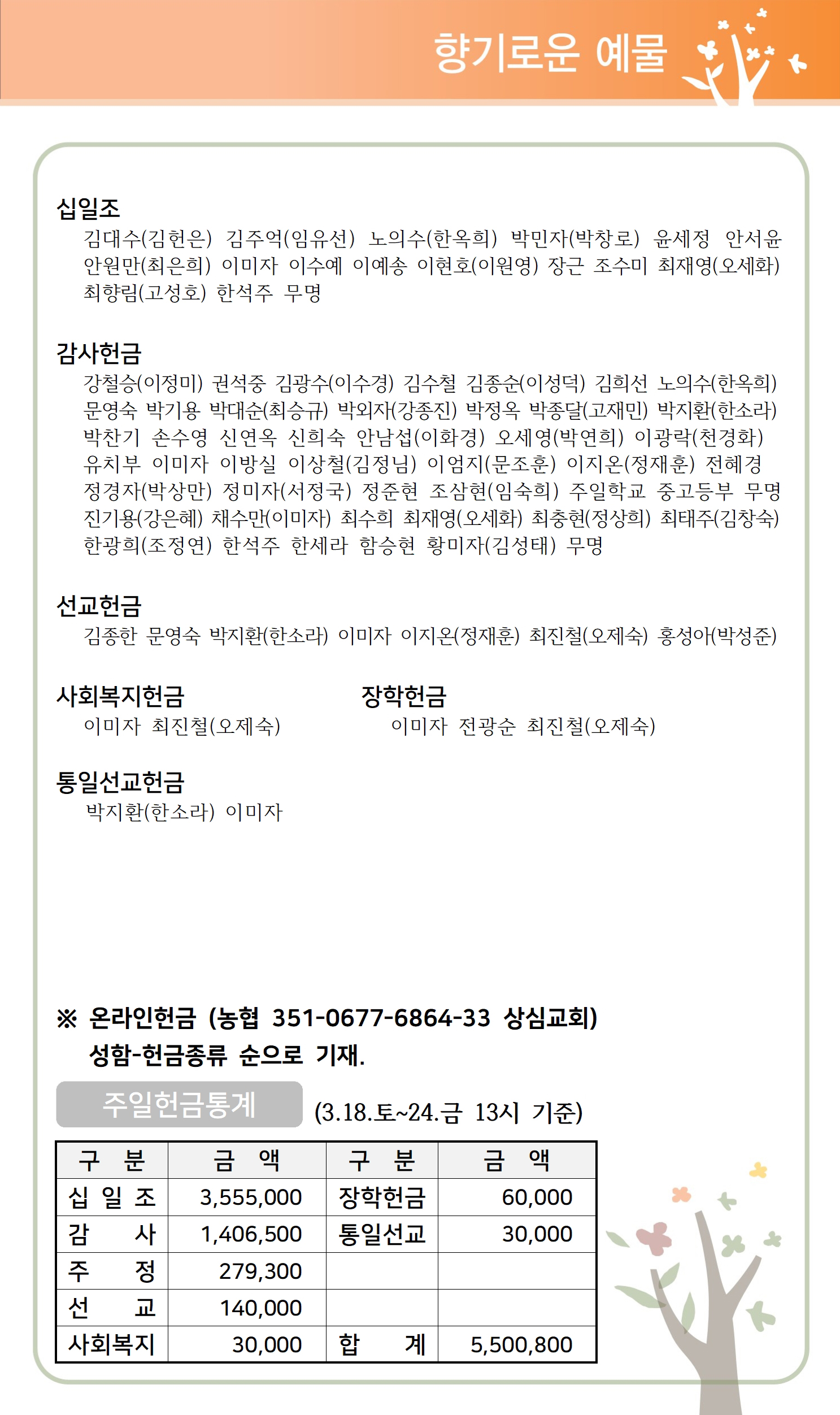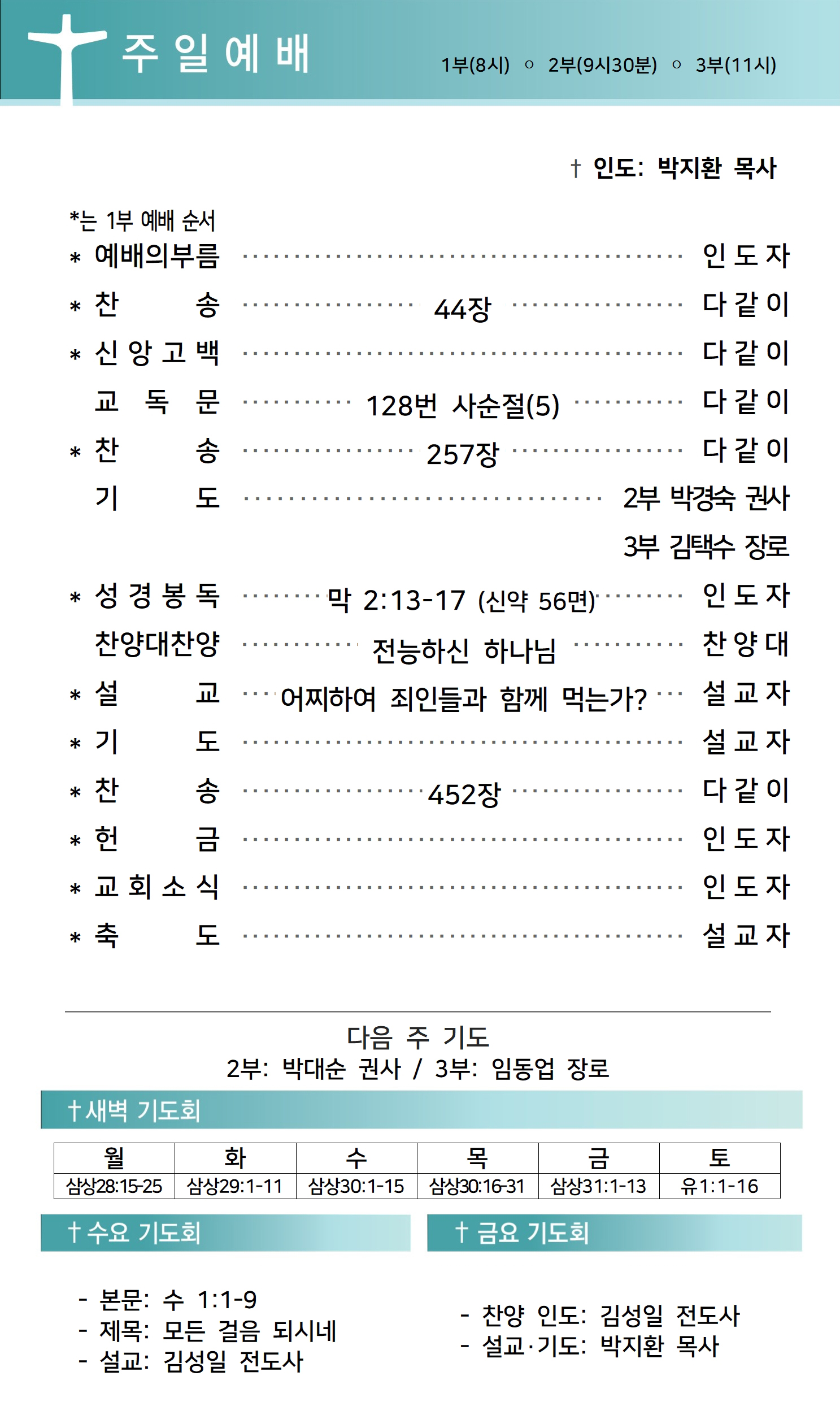 상심리교회 2023년 3월 26일 주보