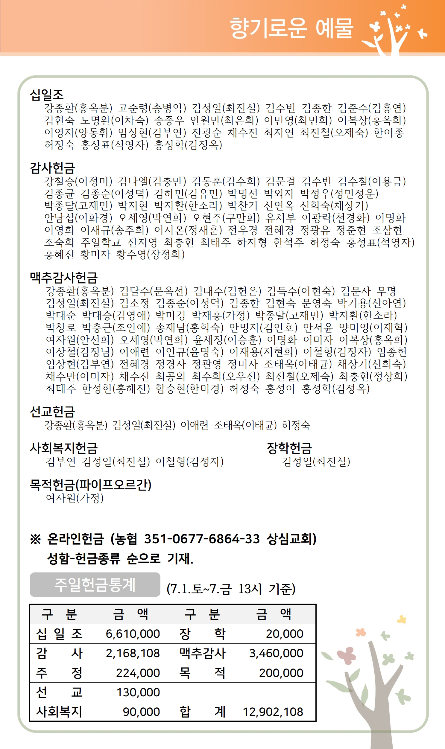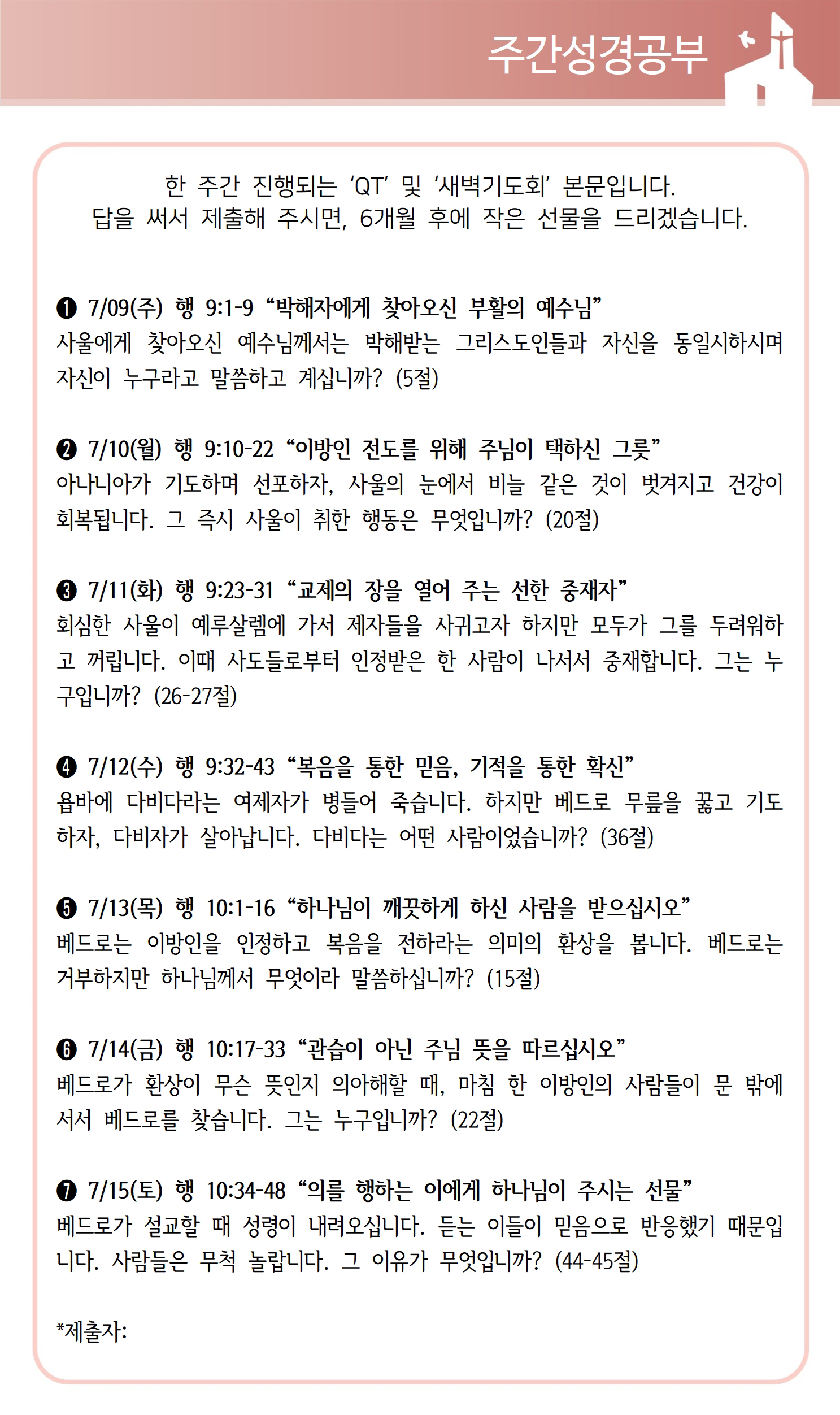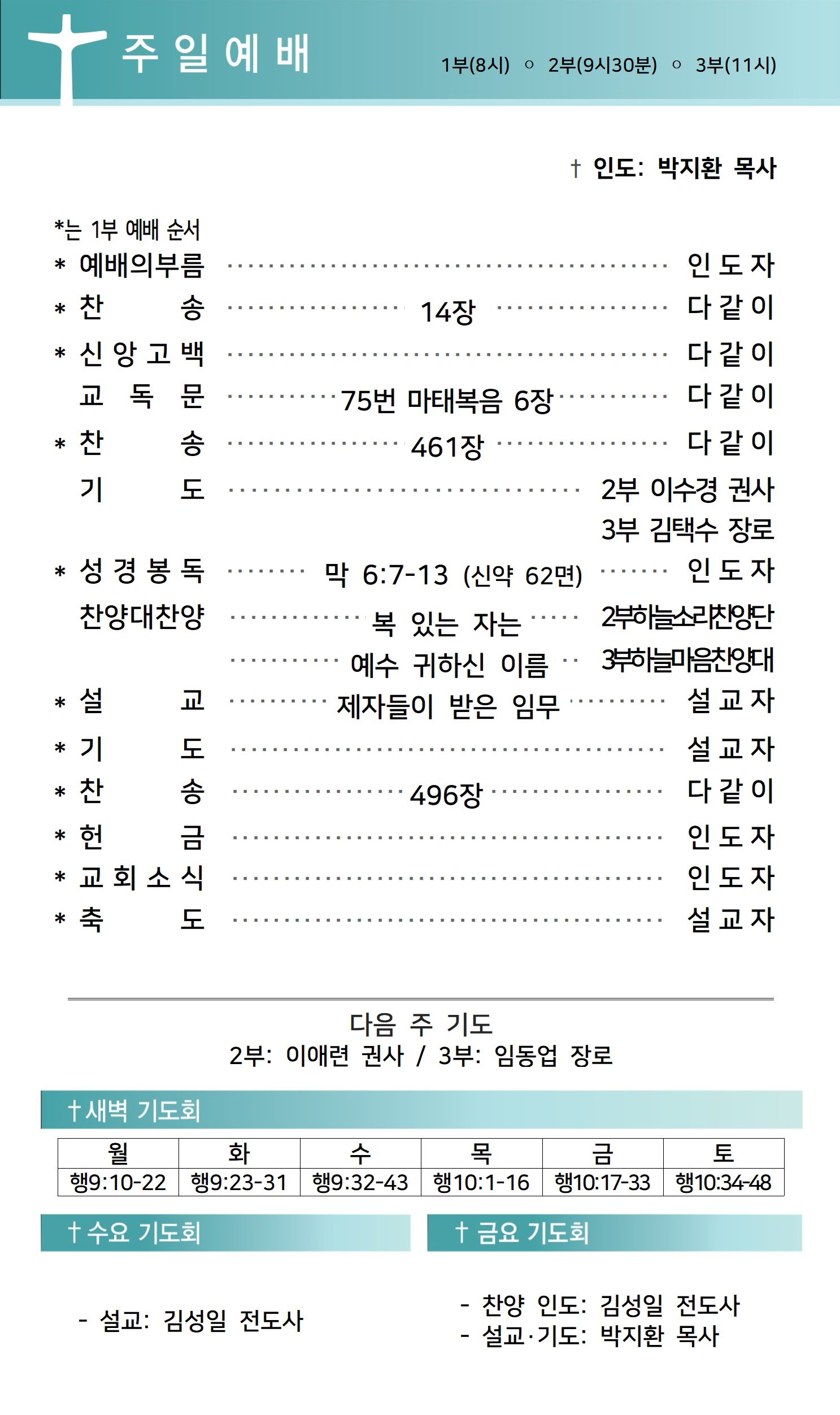 상심리교회 2023년 7월 9일 주보