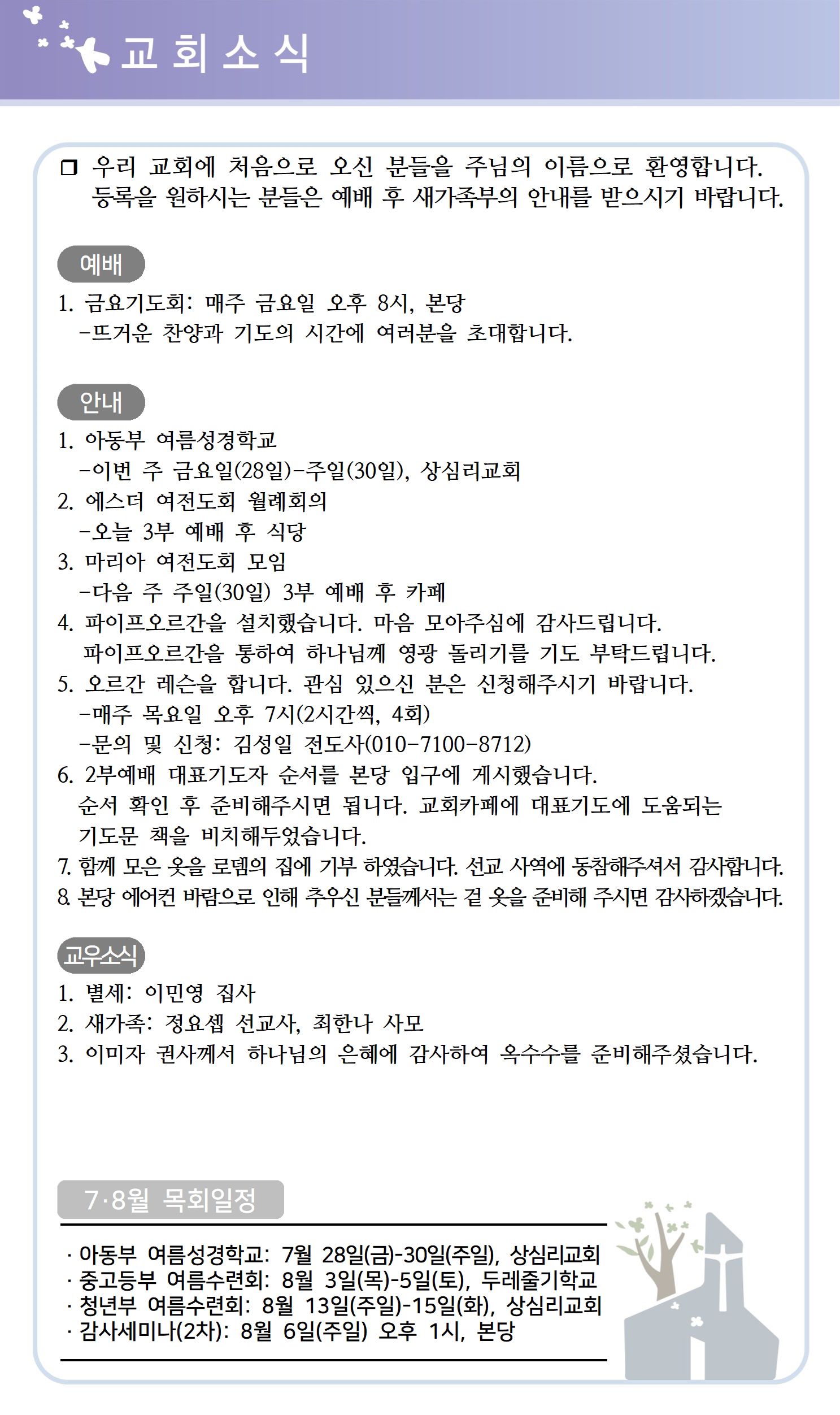 상심리교회 2023년 7월 23일 주보