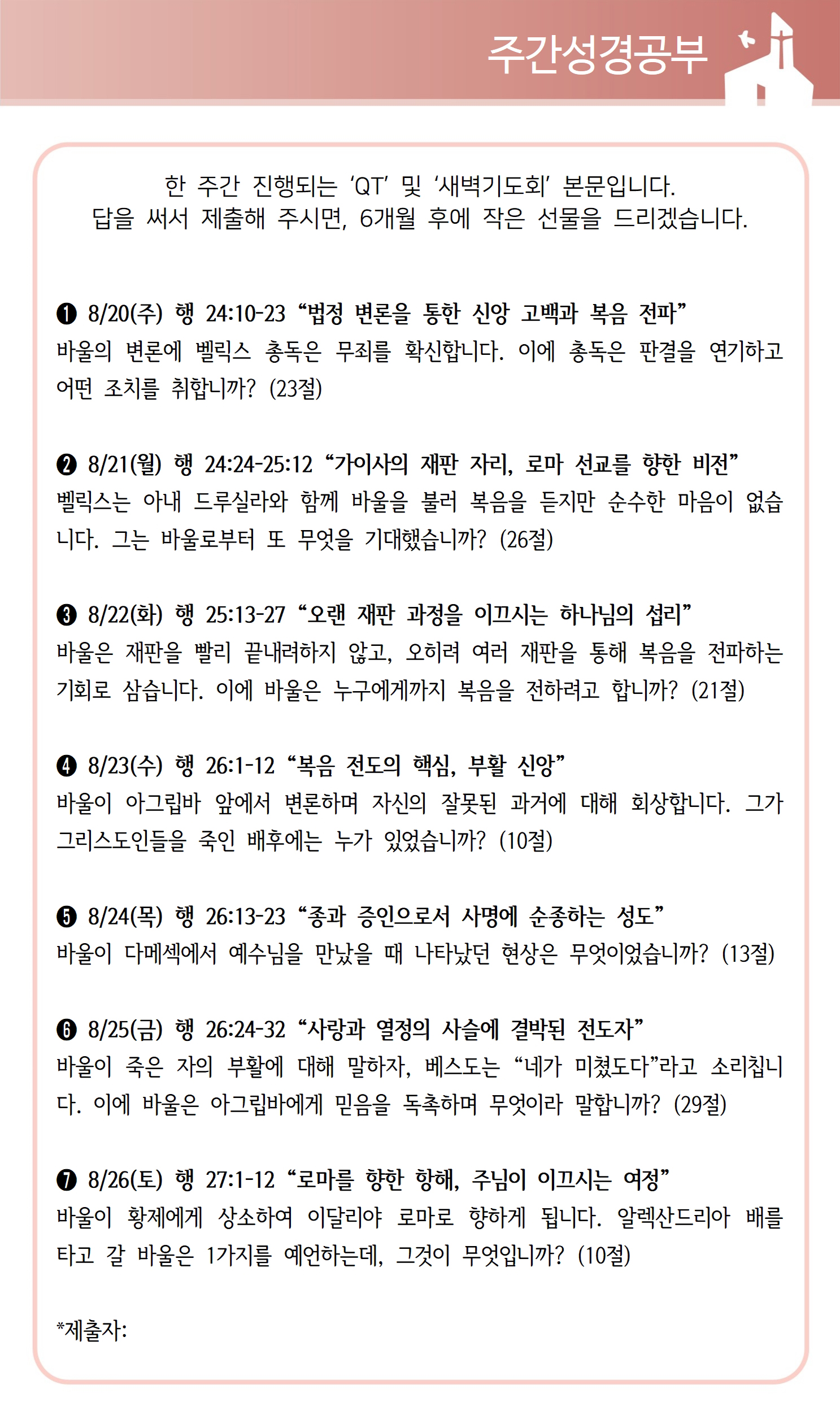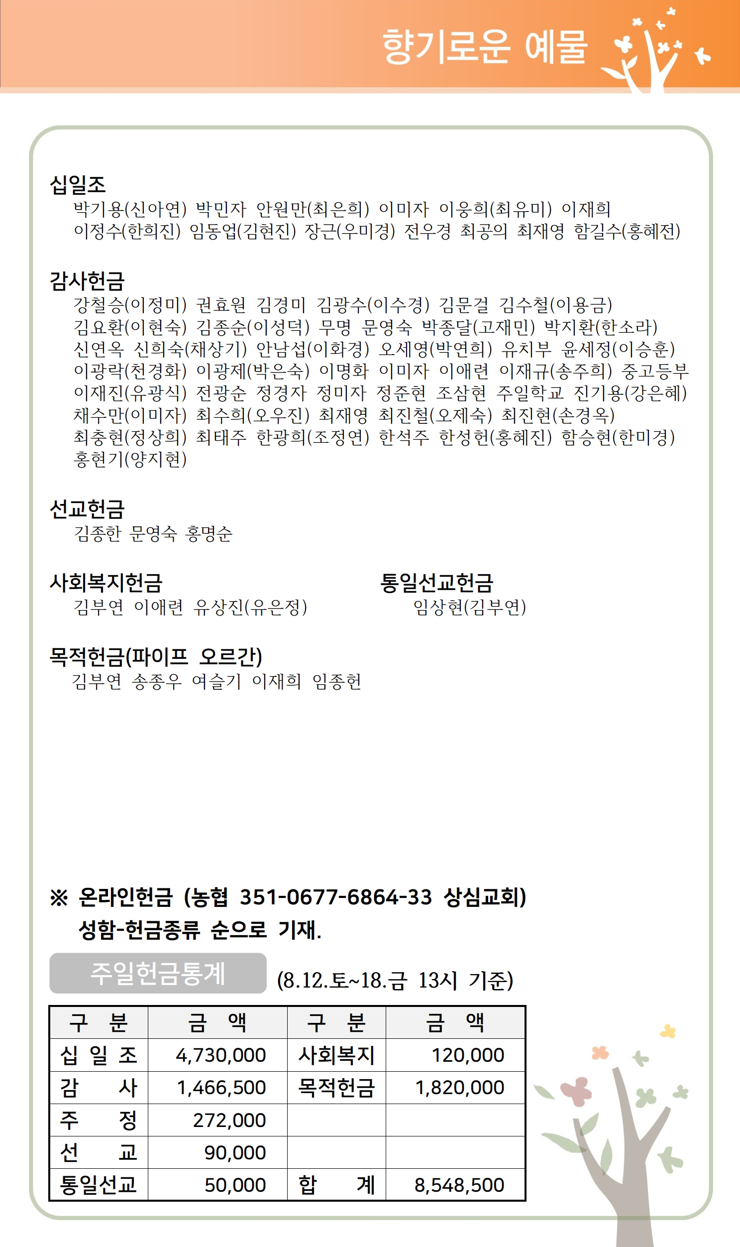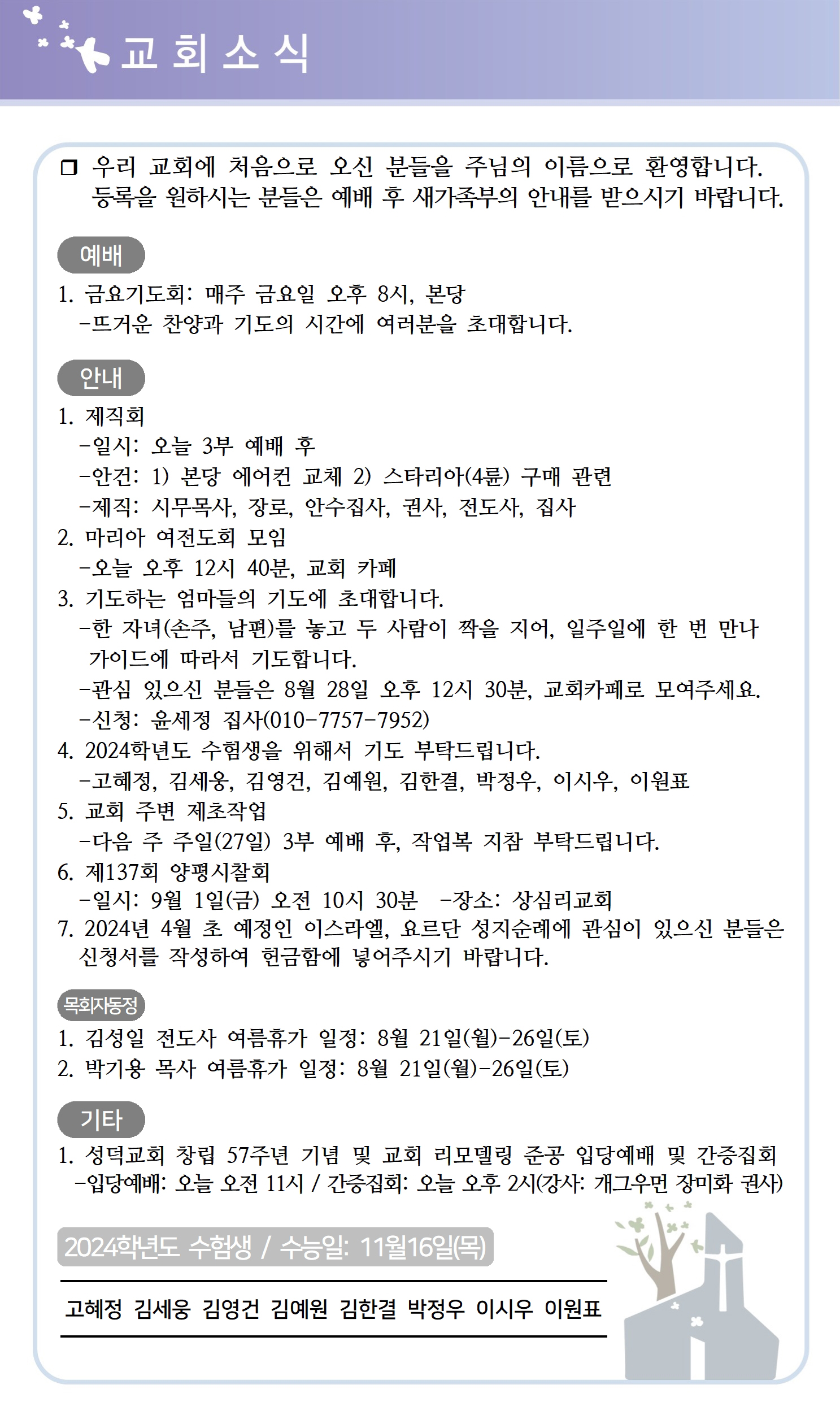 상심리교회 2023년 8월 20일 주보