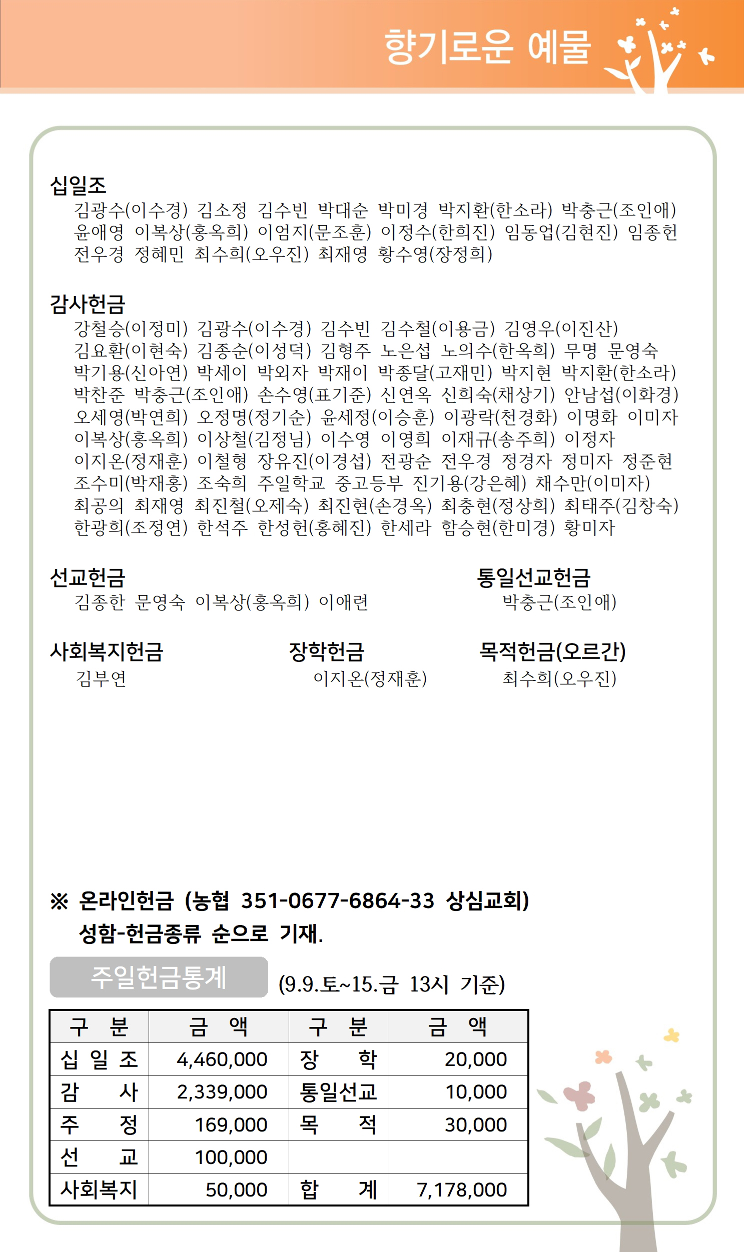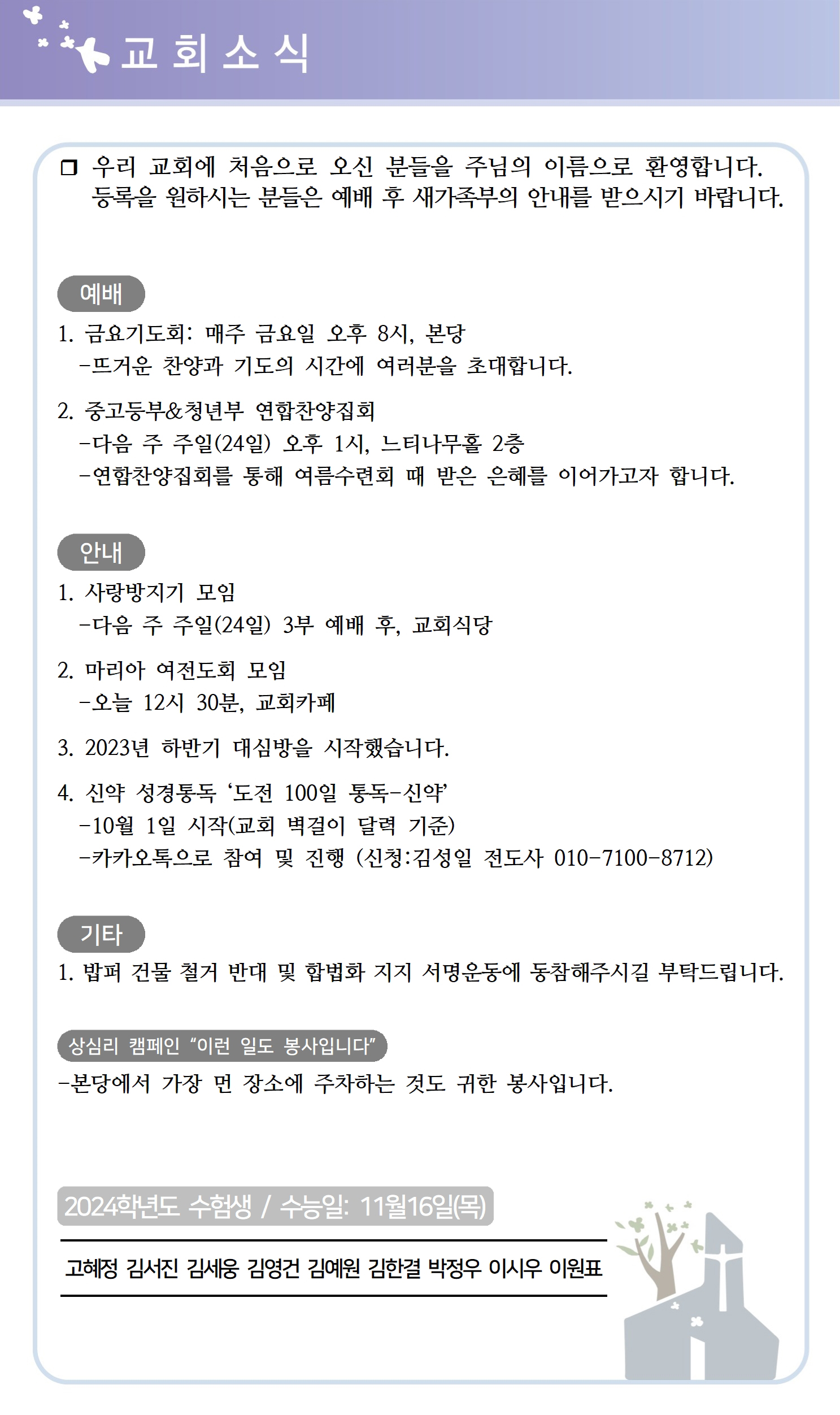 상심리교회 2023년 9월 17일 주보