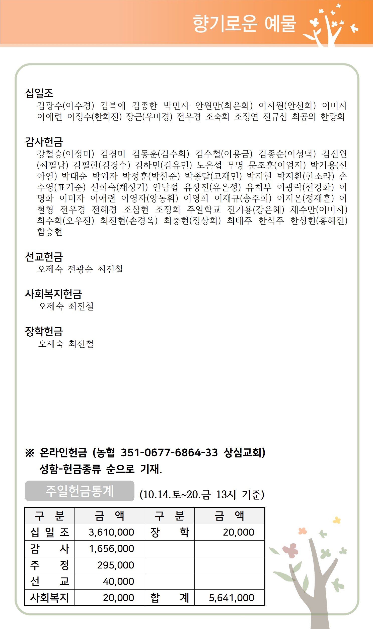 | 상심리교회 2023년 10월 15일 주보 (0) | 2023.10.14 |