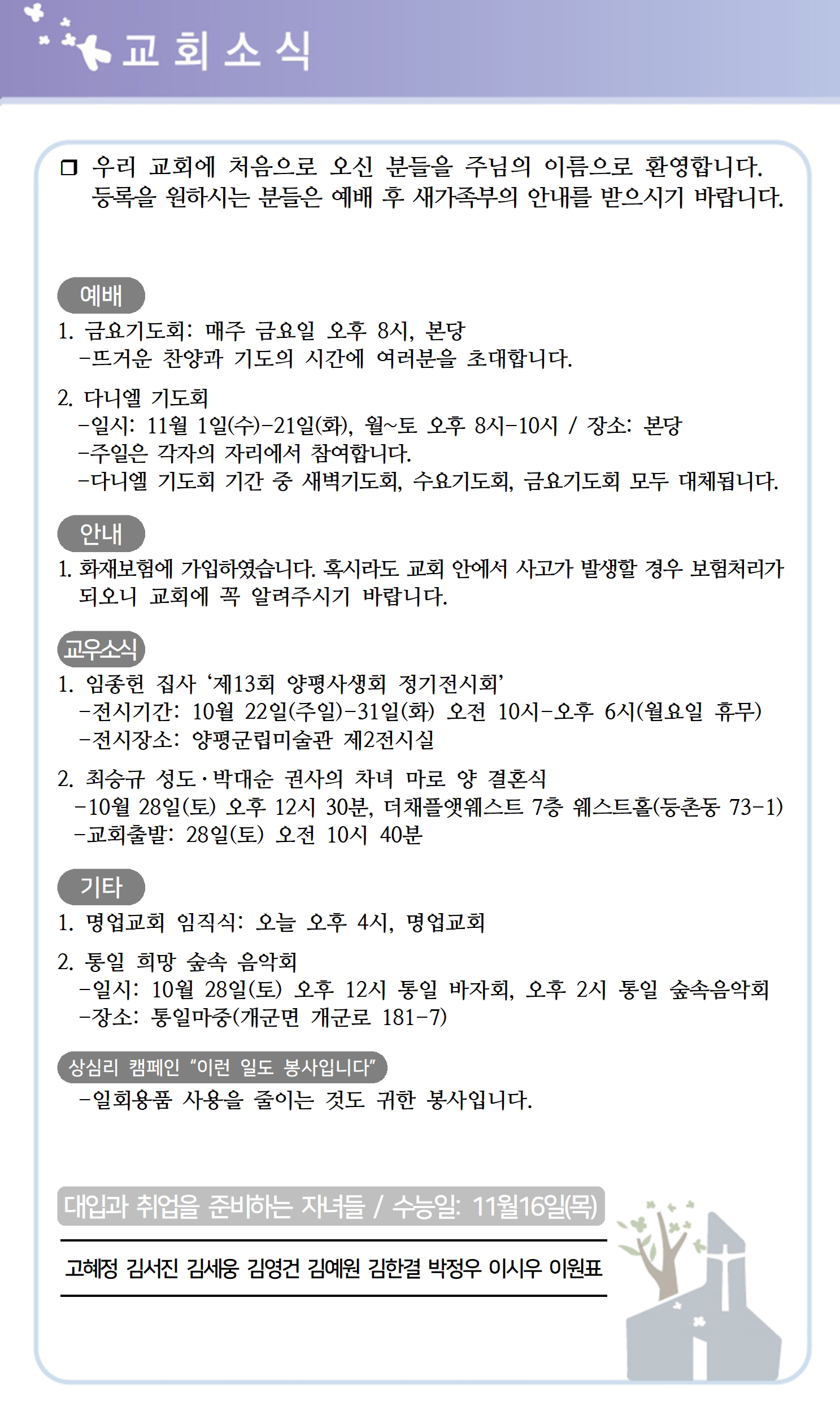| 상심리교회 2023년 11월 5일 주보 (0) | 2023.11.04 |