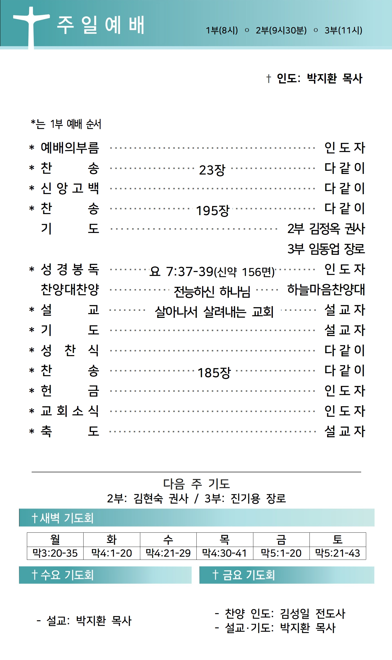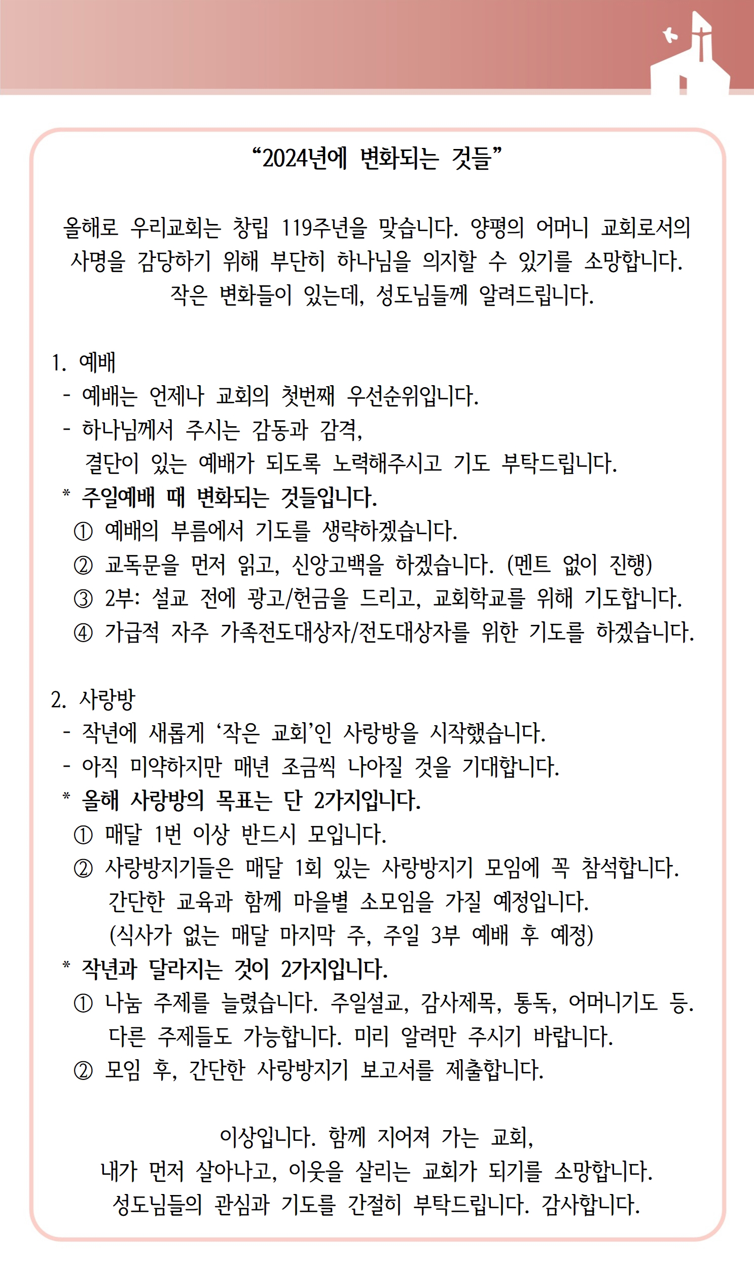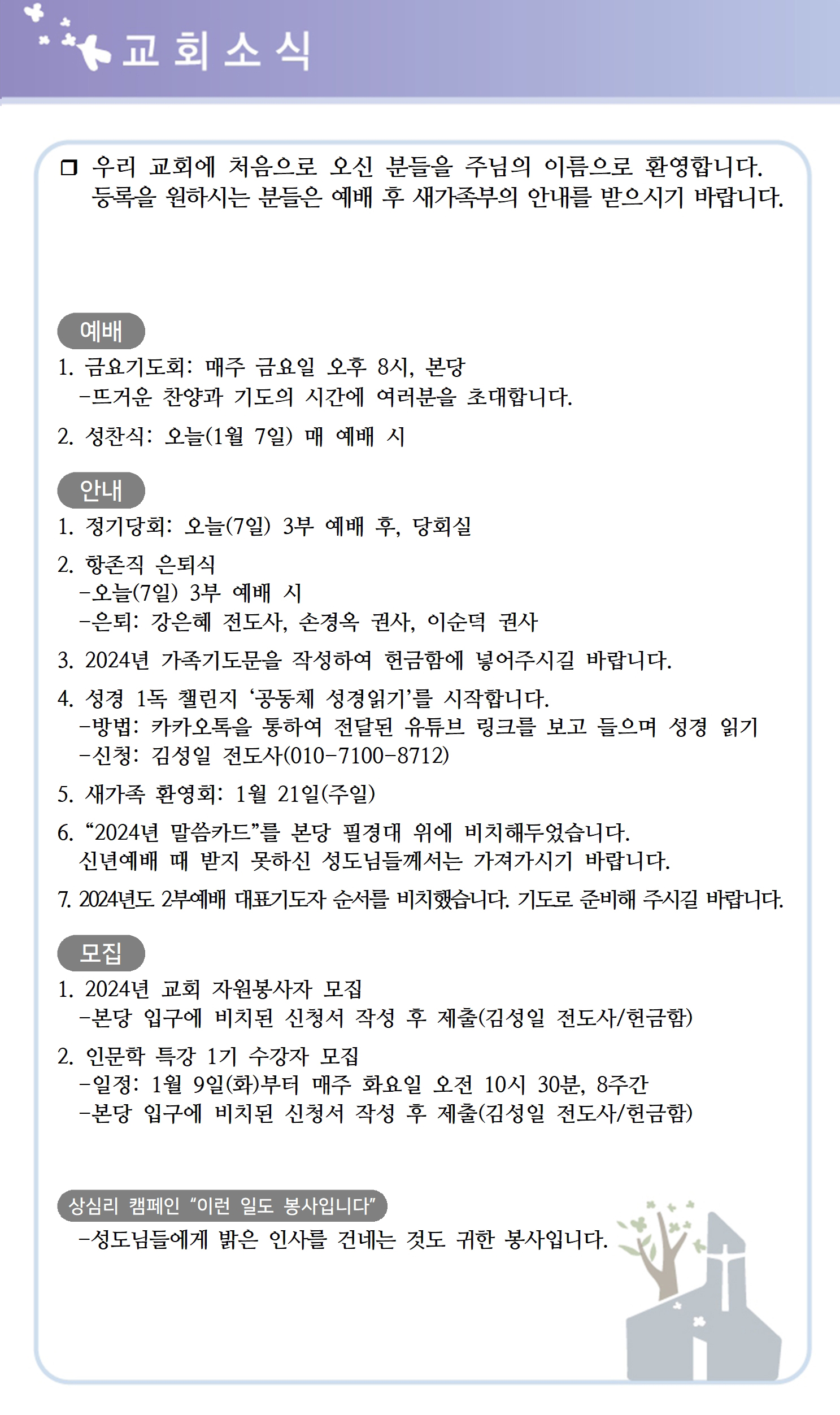 상심리교회 2024년 1월 7일 주보
