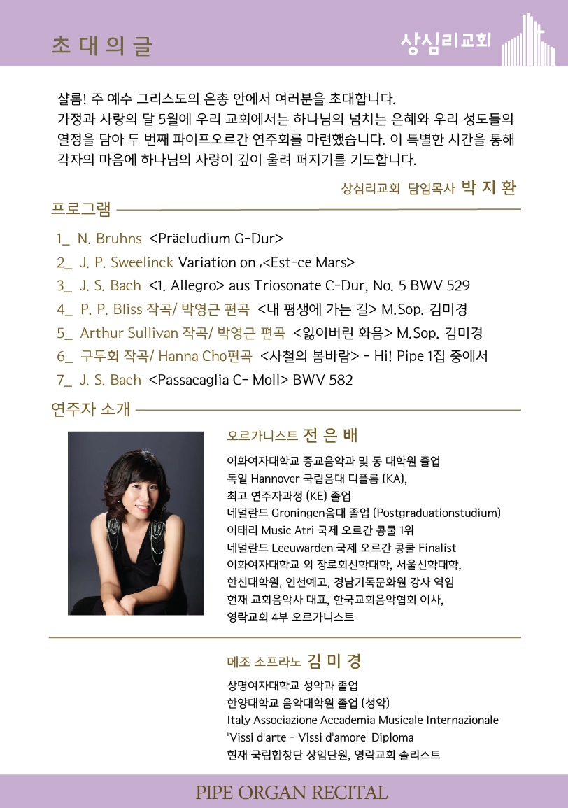 상심리교회 2024년 5월 15일 파이프오르간 봄 정기 연주회