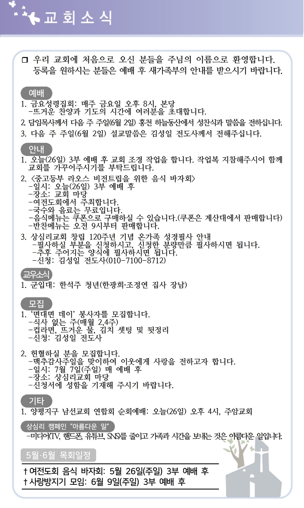 상심리교회 2024년 5월 26일 주보