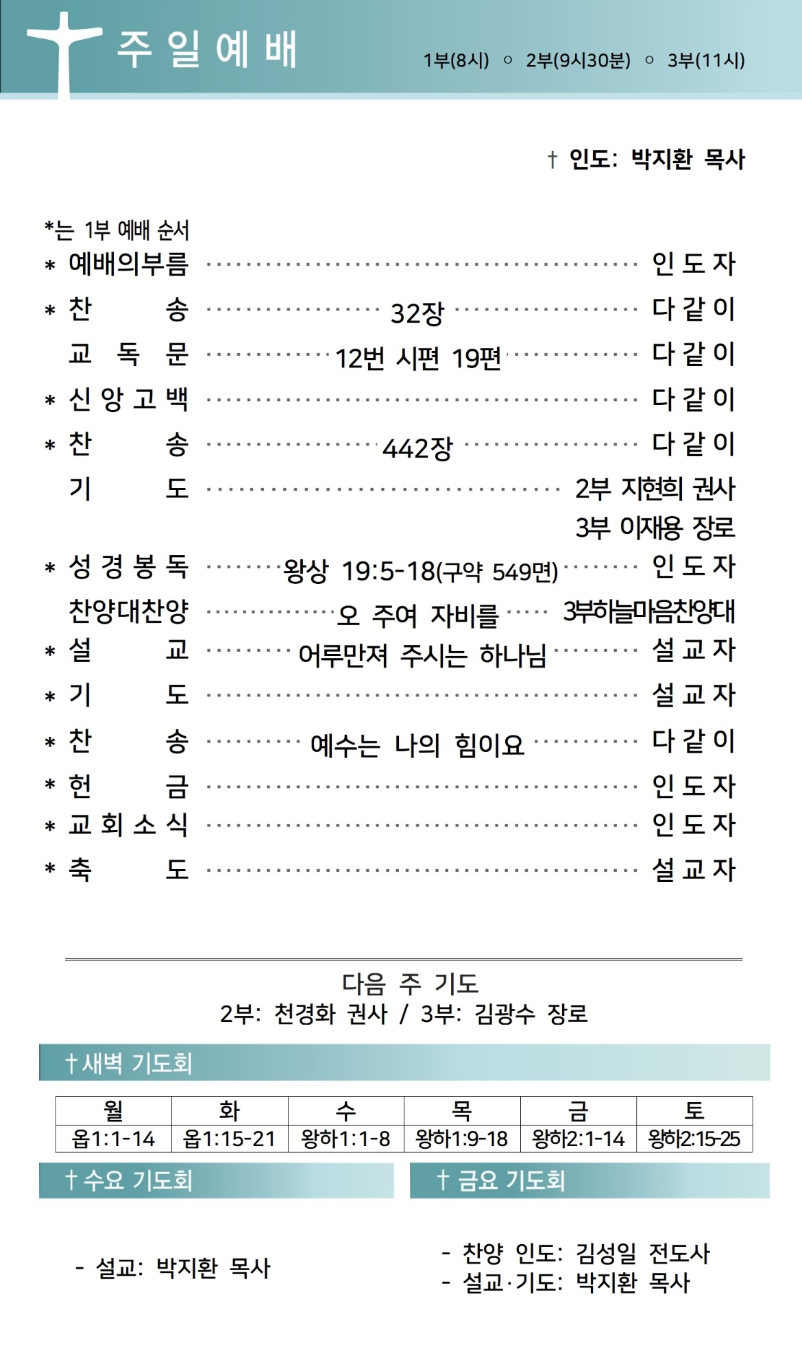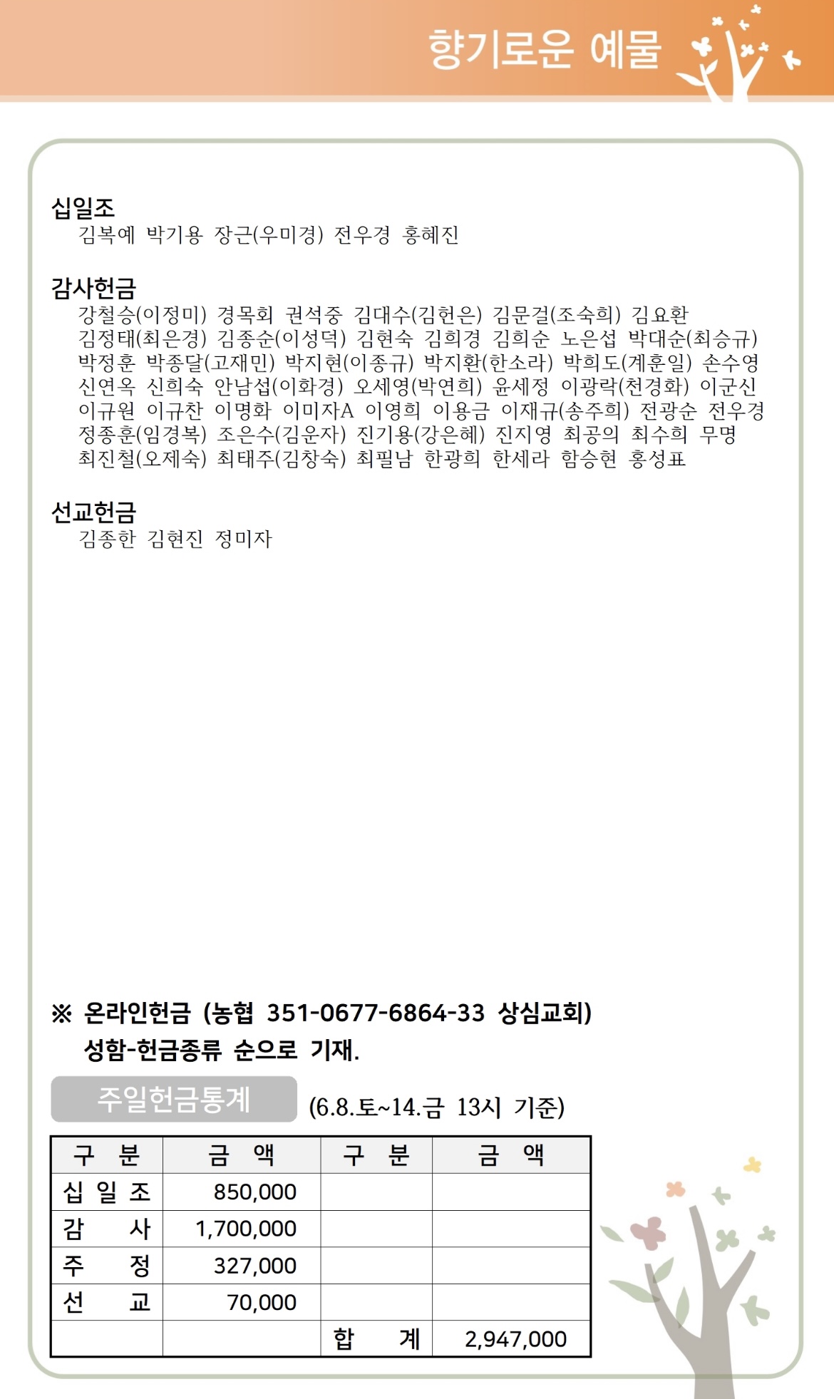 상심리교회 2024년 6월 16일 주보