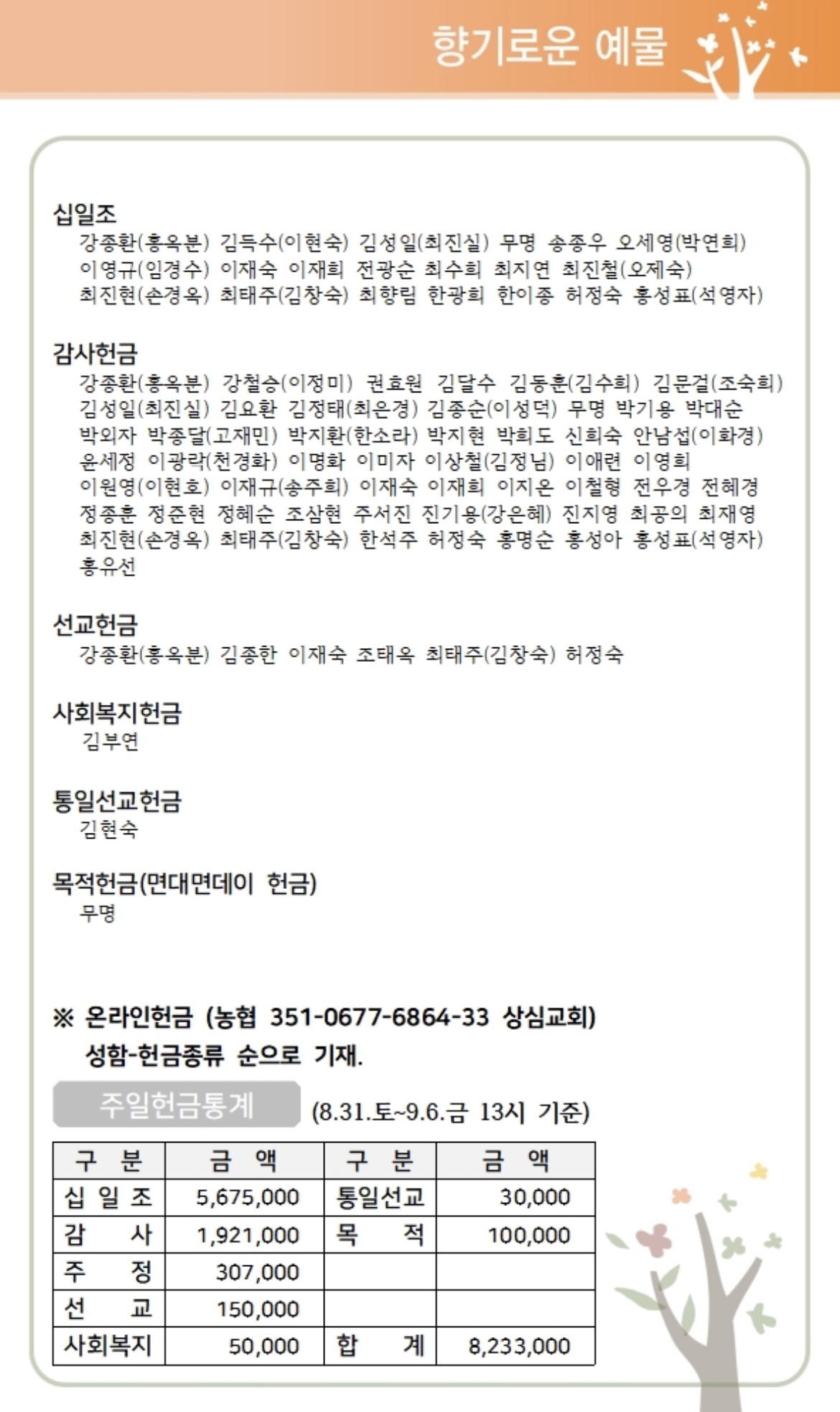 상심리교회 2024년 9월 8일 주보