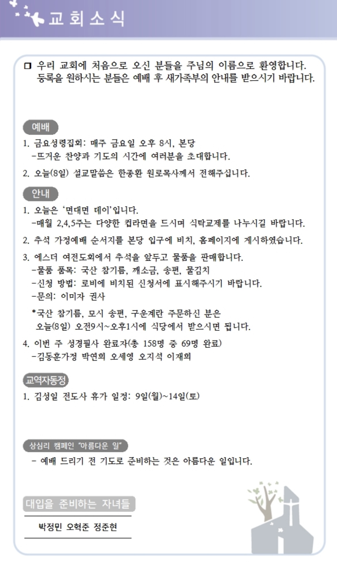 | 상심리교회 2024년 9월 15일 주보 (0) | 2024.09.14 |