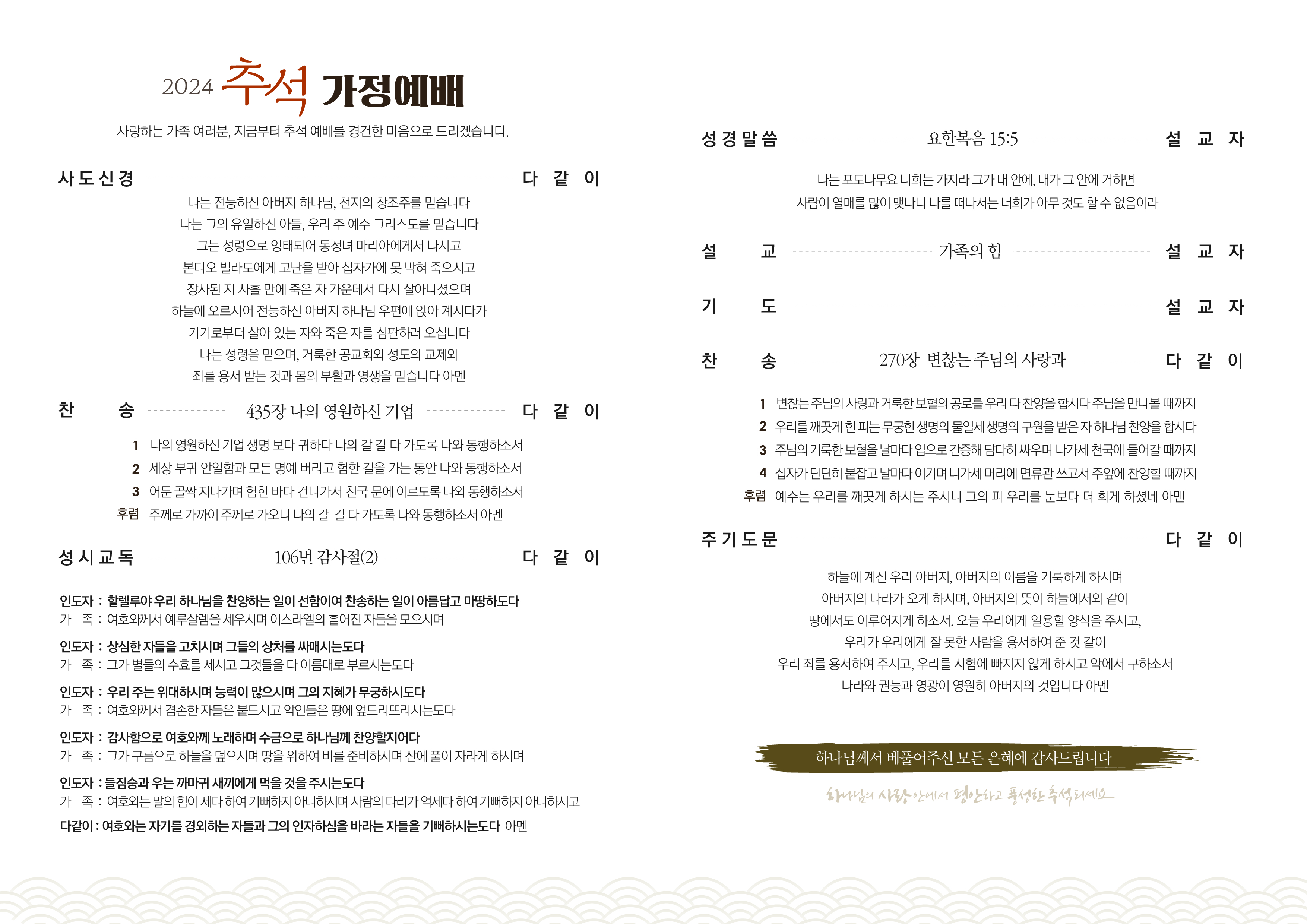 상심리교회 2024년도 추석 가정예배 순서지