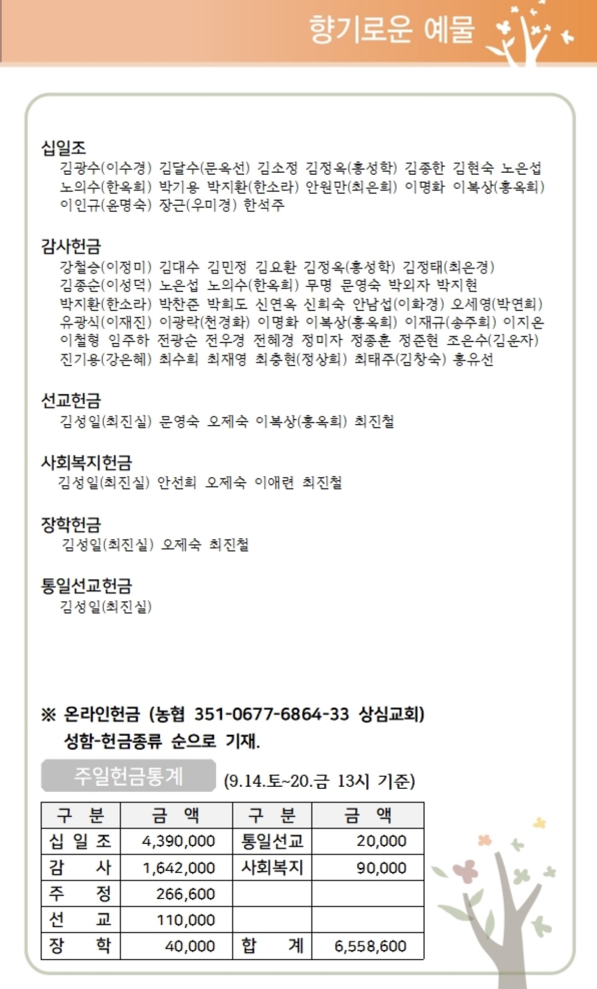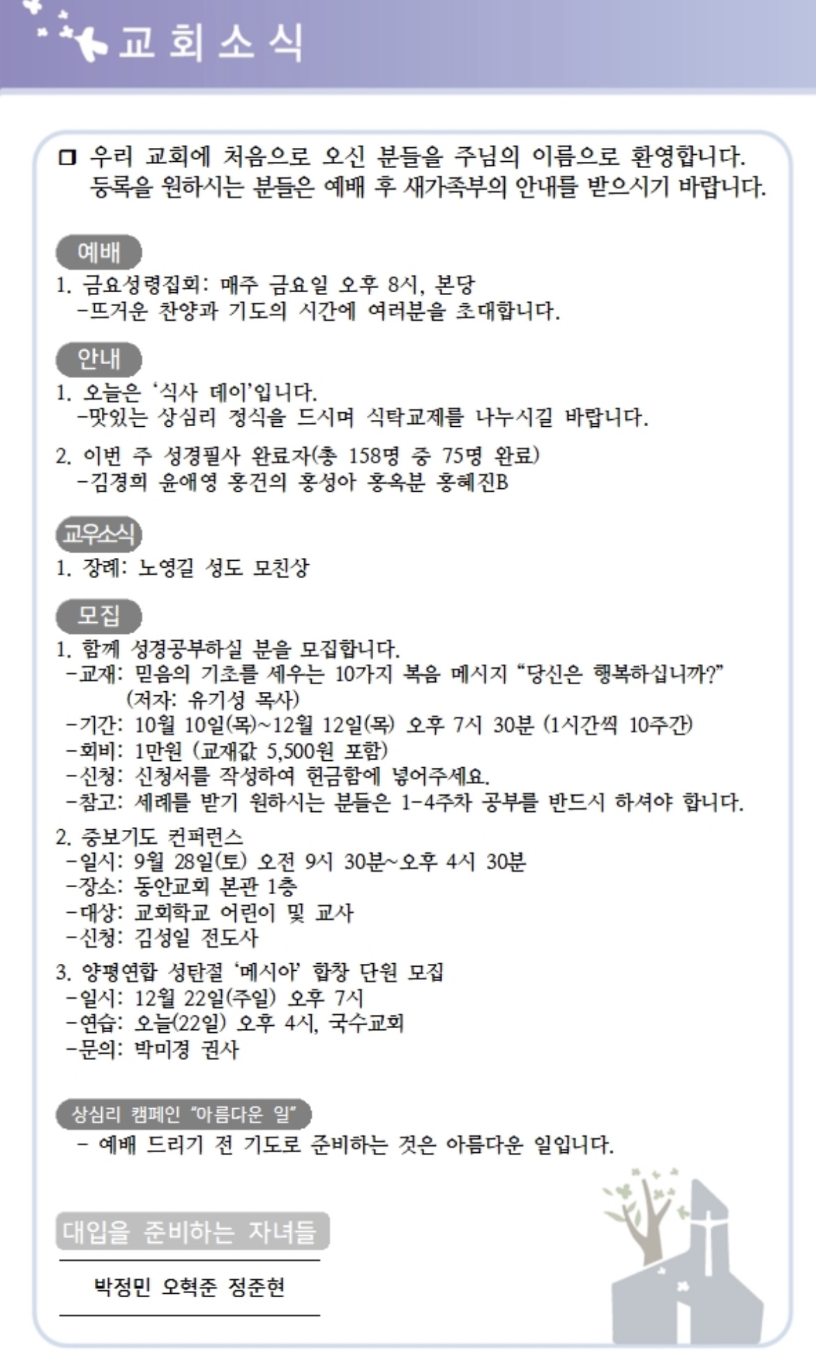 | 상심리교회 2024년 10월 6일 주보 (0) | 2024.10.05 |