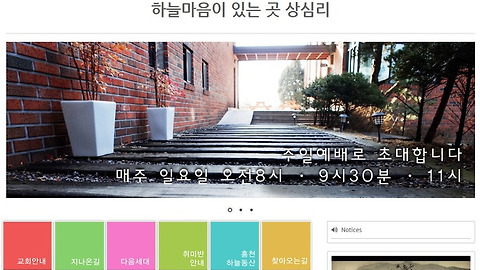 7월 2일 홈페이지를 오픈테스트중입니다이곳은 주로 교회사진이나 행사사진을 올리는 곳으로 사용됩니다.교회소식 위주의 블로그형 홈페이지니 많이 방문해주세요