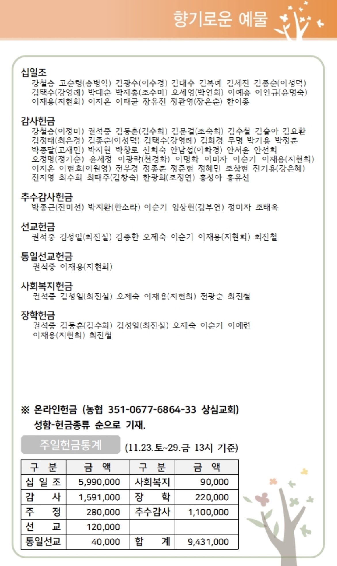 상심리교회 2024년 12월 1일 주보
