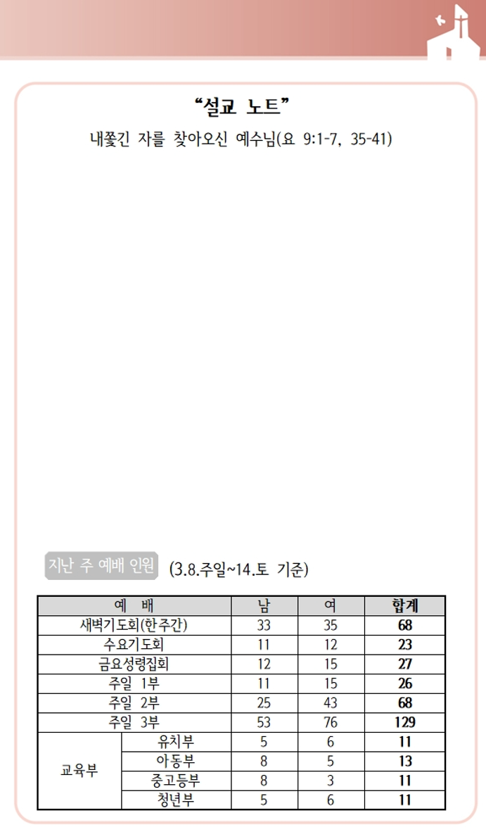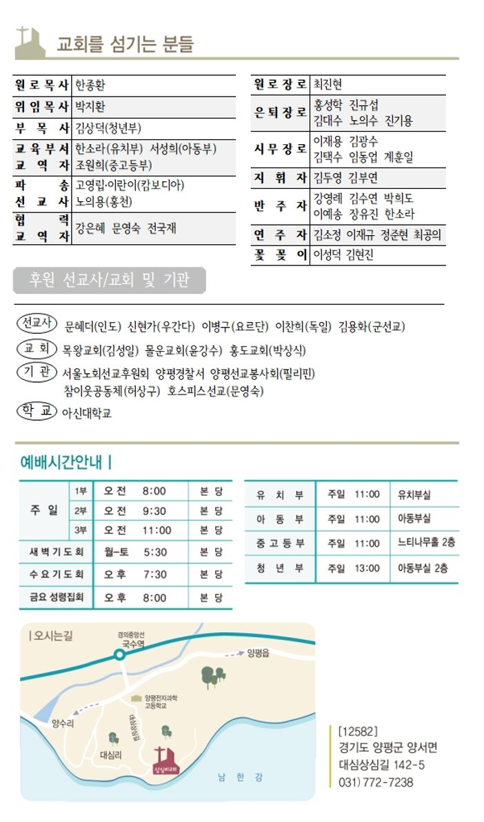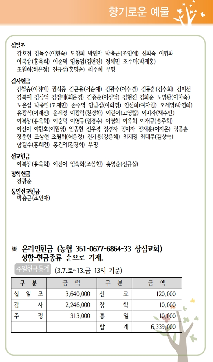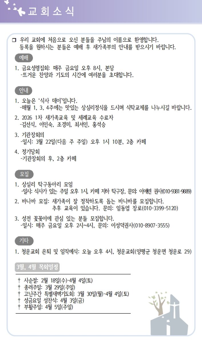 상심리교회 2026년 3월15일 주보